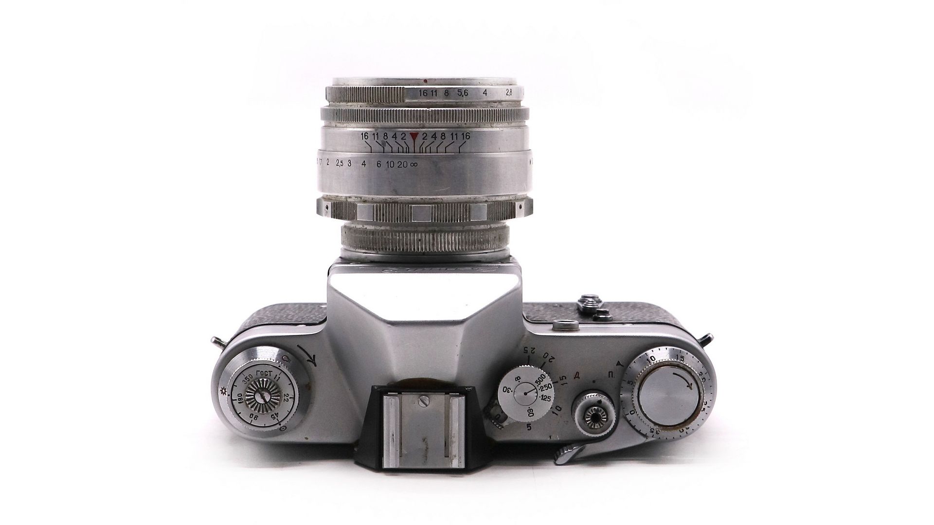 Оснащен объективом Гелиос-44. Оптическая схема - 6 линз в 4 группах. Полный ход геликоида — длинный — под 280 градусов. Объектив снабжен кольцом предустановки диафрагмы. Лепестков диафрагмы 13 штук. На всех значениях они образуют абсолютно ровные круги. Гелиос-44 2/58 дает резкую картинку, начиная с самой открытой диафрагмы. При этом картинка будет достаточно мягкой. Объектив отлично покажет себя в качестве портретника.