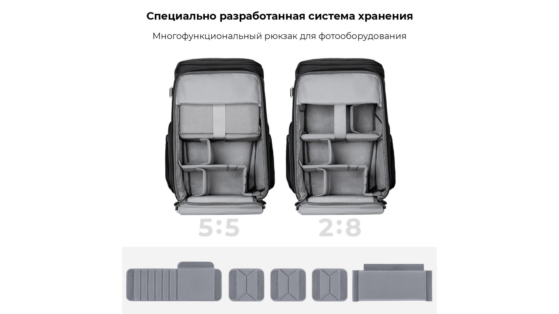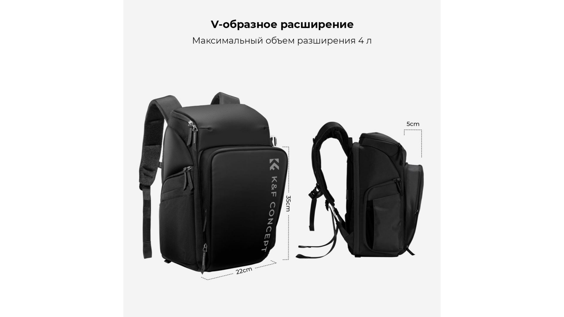Благодаря увеличению ширины передней панели и встроенному независимому отсеку для стабилизатора вы можете увеличить вместимость рюкзака на 2-3 литра.