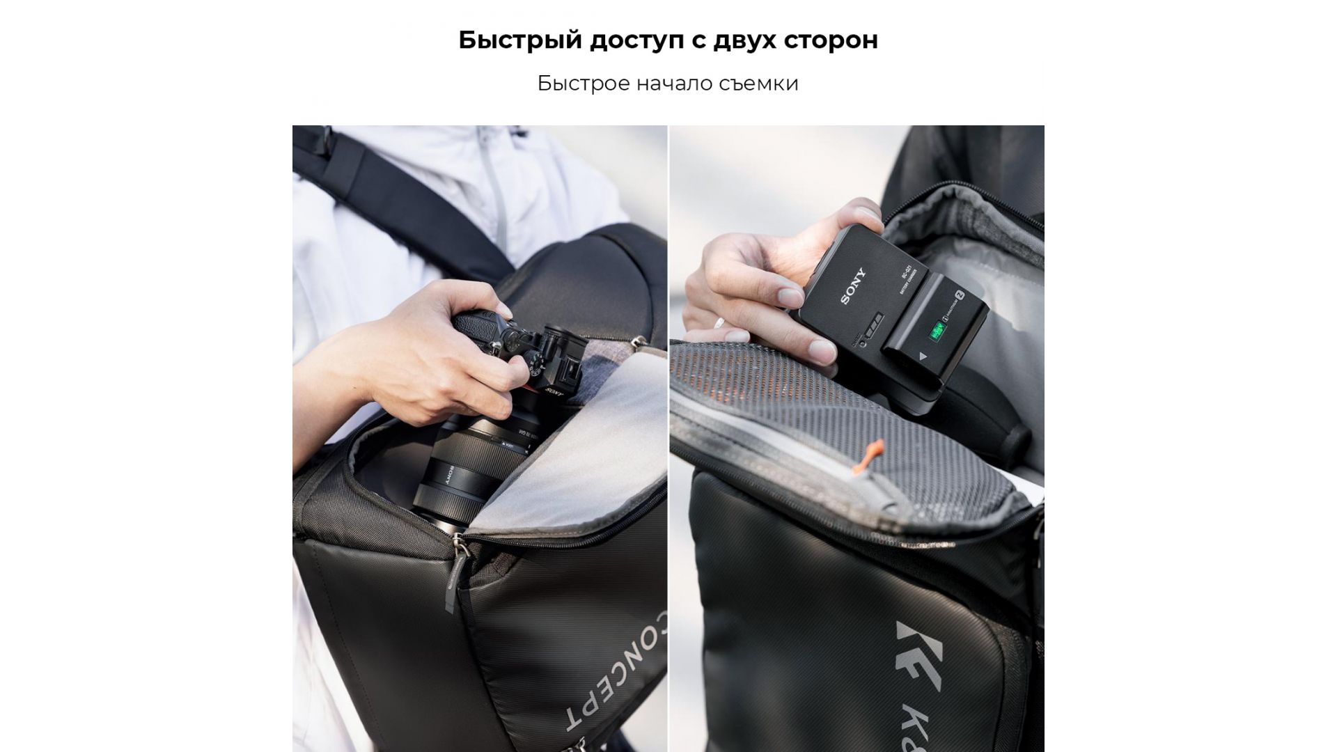 Благодаря практичному дизайну вы можете легко настроить внутреннее пространство основного отделения вместительного рюкзака Alpha Air в соответствии с вашими потребностями и конкретно под ваше фотооборудование. Рюкзак подходит для фотографии на открытом воздухе, городской уличной фотографии, портретной съемки и т.д.