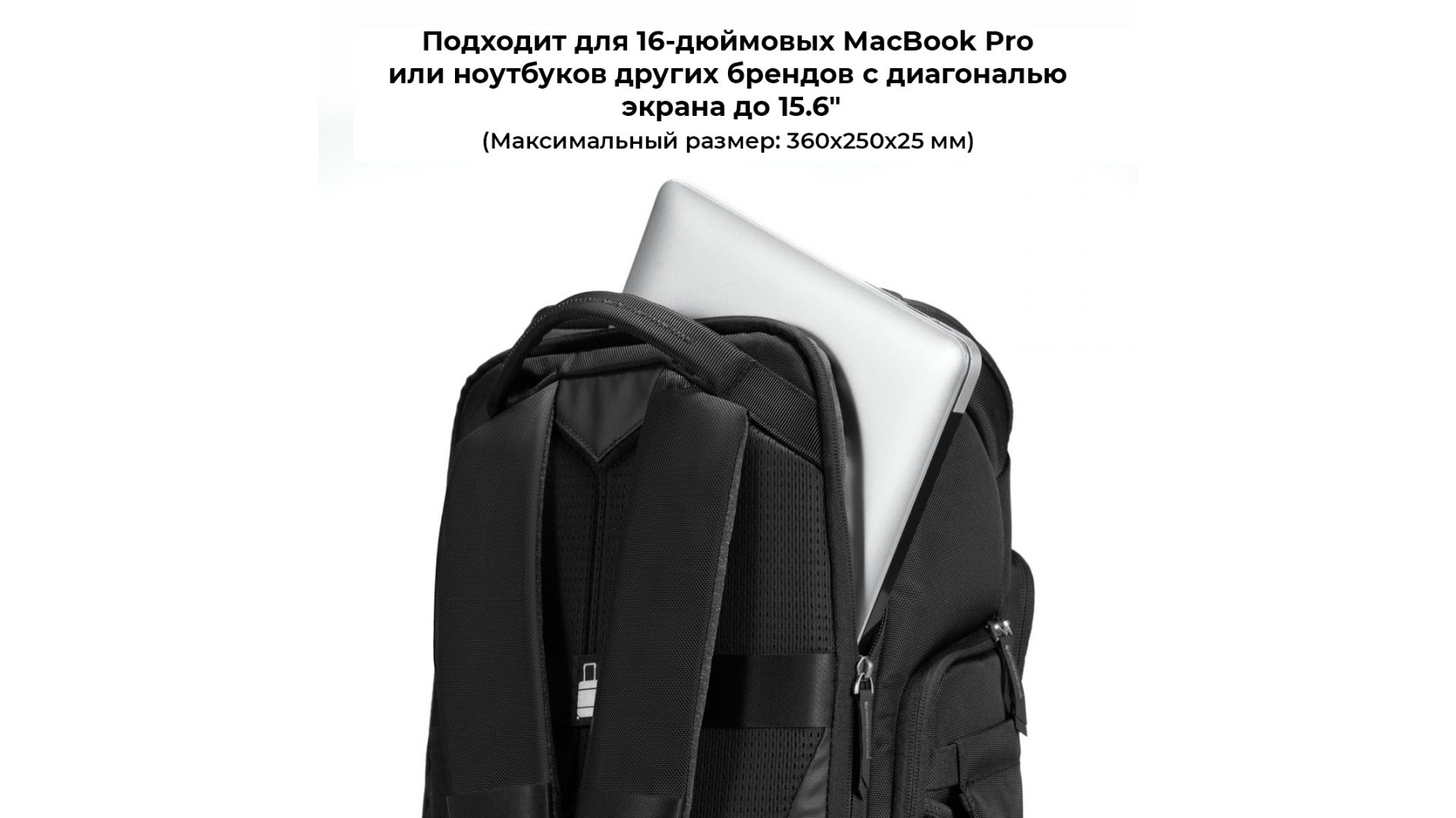 Конструкция с двумя отделениями, открывающимися сверху и сбоку, позволяют получать быстрый доступ к оборудованию. Модель предусматривает отделение для 16-дюймового ноутбука.