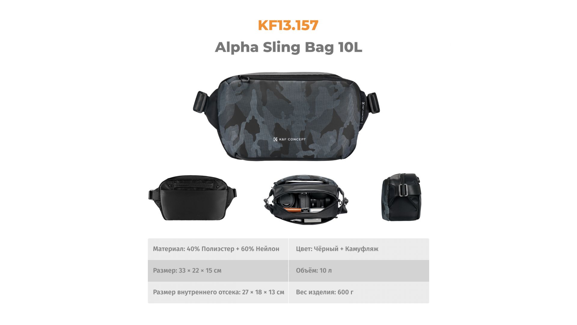 Комплектация:Фотосумка-слинг K&F Concept KF13.157V4