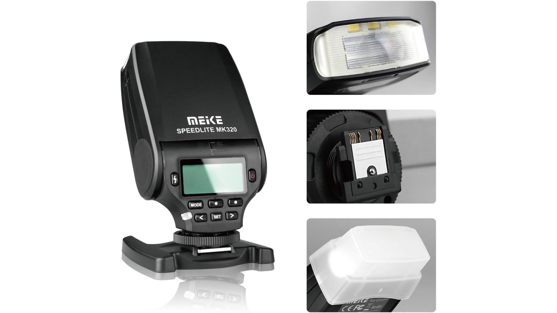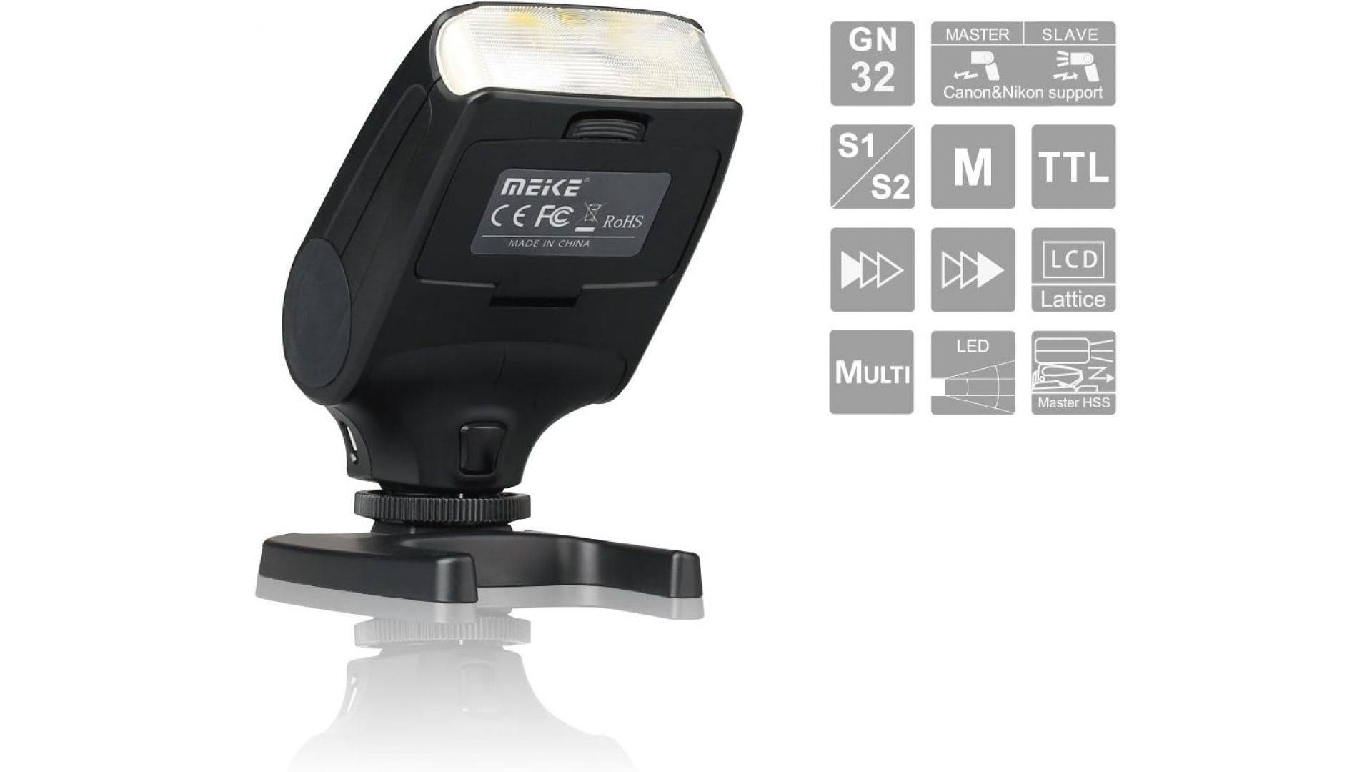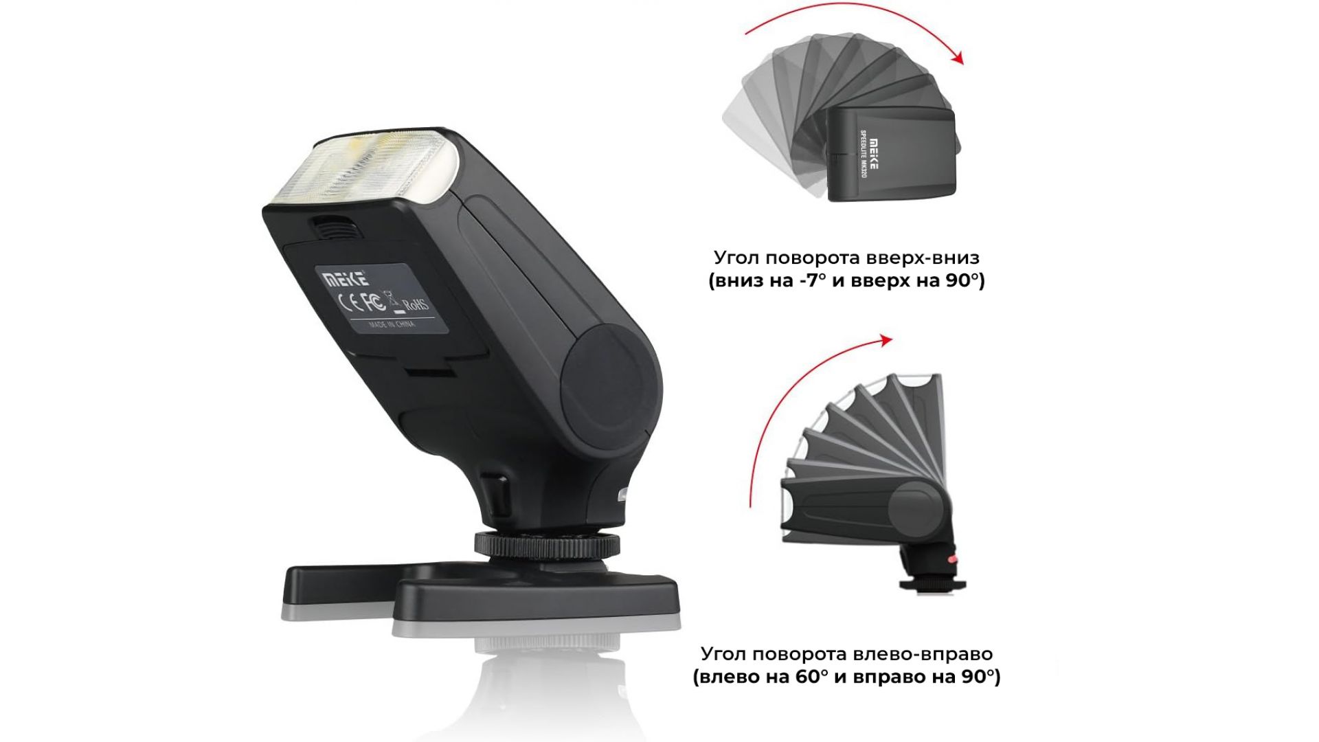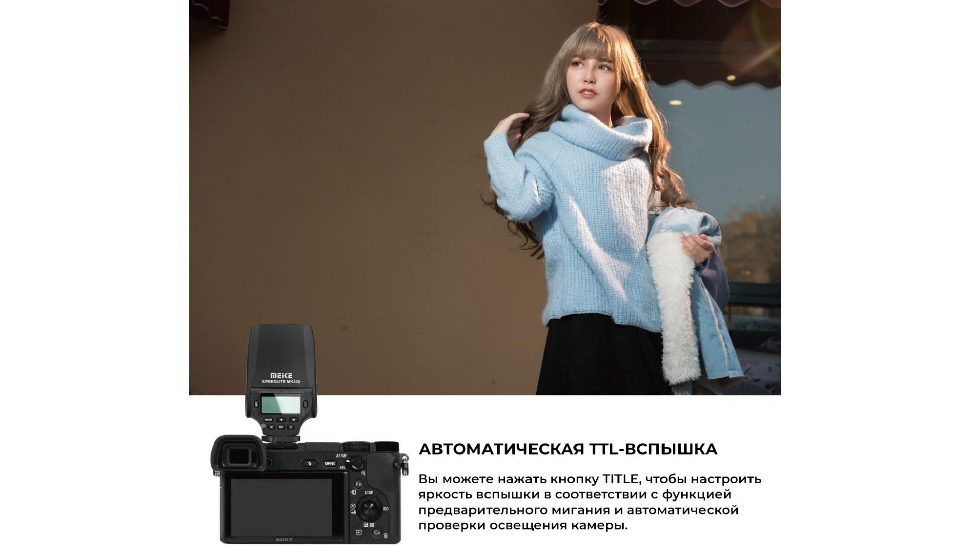 Внешняя компактная вспышка Meike MK-320N для фотокамер Nikon с поддержкой iTTL и поворотом световой головки. При небольших общих размерах вспышки и малом весе, камера с этой вспышкой будет удобной и практичной, позволяя производить съемку в любом месте и в любое время.