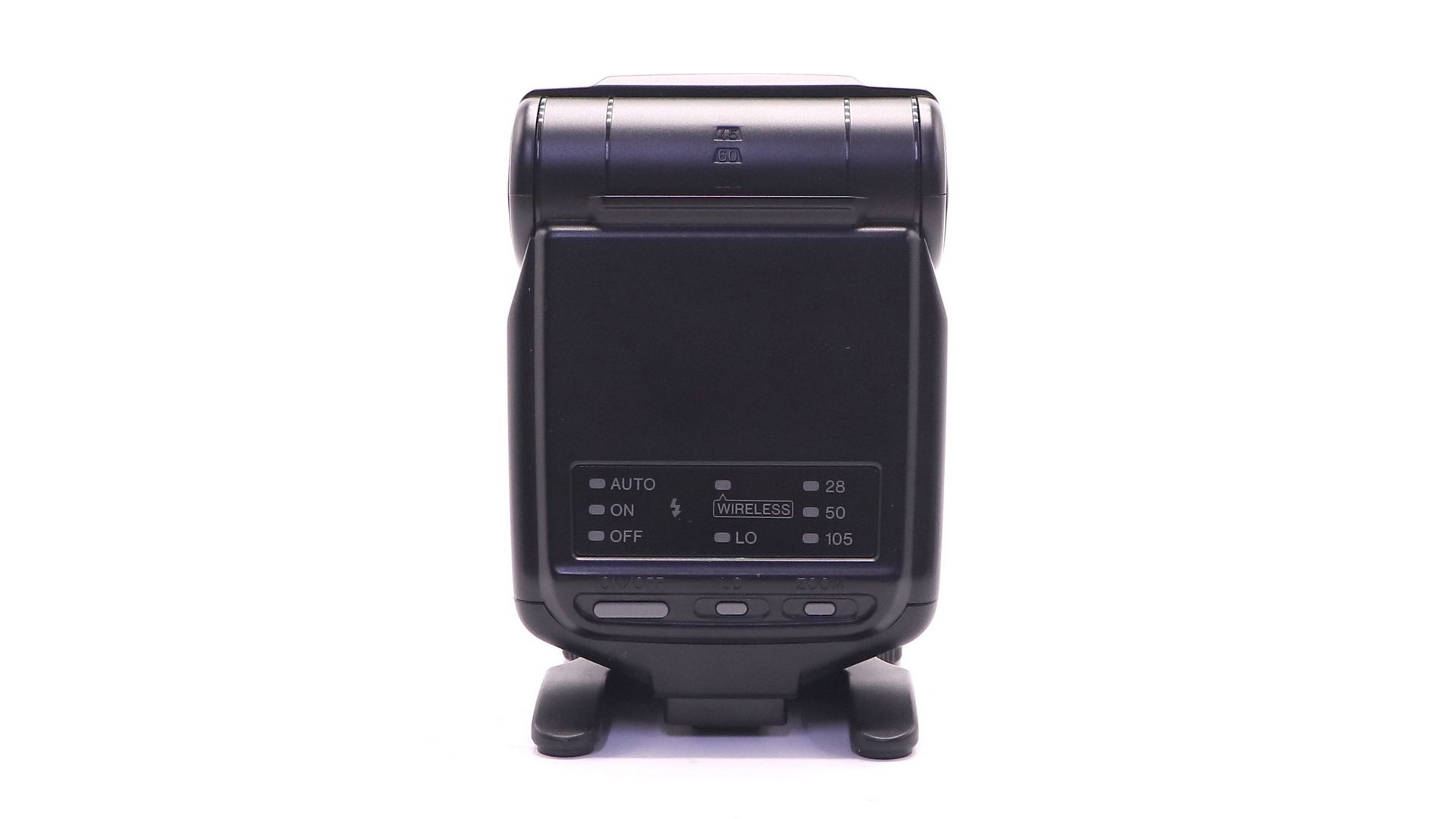 Эта вспышка имеет рефлектор, перемещением которого можно изменять угол луча. Вспышка автоматически подстраивает угол луча в соответствии с фокусным расстоянием объектива от 28 мм до 105 мм. Естественно, можно настроить ее и вручную, правда, в этом случае имеются только три фиксированные позиции - 28 мм, 50 мм, 105 мм. Кроме того, рефлектор может поворачиваться в вертикальной плоскости до угла 90 градусов. В горизонтальной плоскости он не поворачивается. С ней можно использовать рассеиватель для создания мягкого освещения. Вспышка может работать в беспроводном режиме на расстоянии до 5 метров от камеры. Срабатывать она может от импульса встроенной вспышки камеры или от сигнала контроллера для беспроводного управления вспышками.