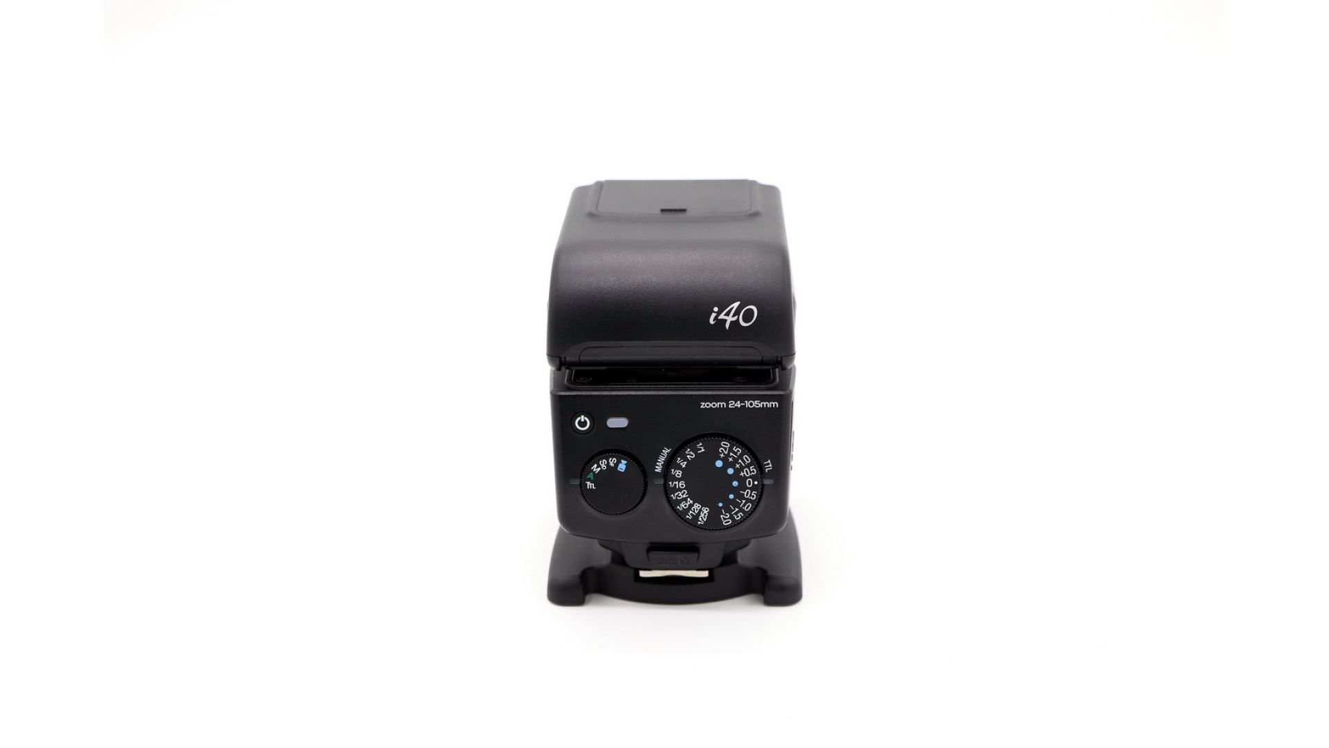 Беспроводной режим TTL позволяет легко и быстро настраивать фотовспышку как автоматически, так и вручную, а также производить высокоскоростную съемку до 1/8000 сек. Настройки TTL корректируются в пределах ±2 EV c шагом в 1/2 ступени. Ведущее число i40 равно 40 при фокусном расстоянии 105 мм. Кроме того, в пределах фокусных расстояний 24-105 мм происходит автоматическое зуммирование. Устройство оснащено встроенным рассеивателем, при необходимости увеличивающим угол отсвечивания до 16 мм. Гаджет имеет пилотный диодный свет, который настраивается в пределах 9 уровней. Температура цвета составляет 5600К.!
