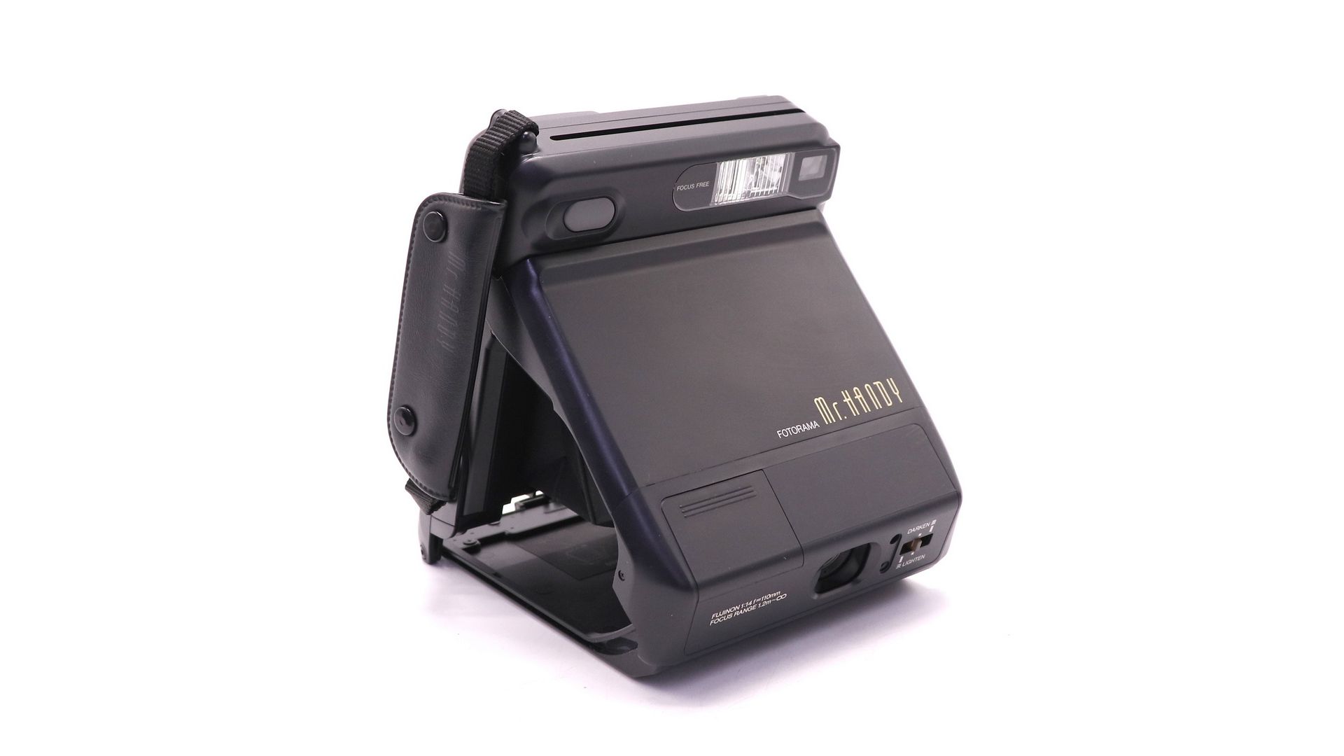 Fuji Fotorama Mr. Handy - японский фотоаппарат моментальной печати, раритетный аппарат. Делает панорамные снимки, которые не выцветают даже спустя много лет. Для него подходят картриджи типа Fuji Instаnt соlоr film FI-800GТ или Fuji Instах Мini (размер 54 мм x 86 мм).