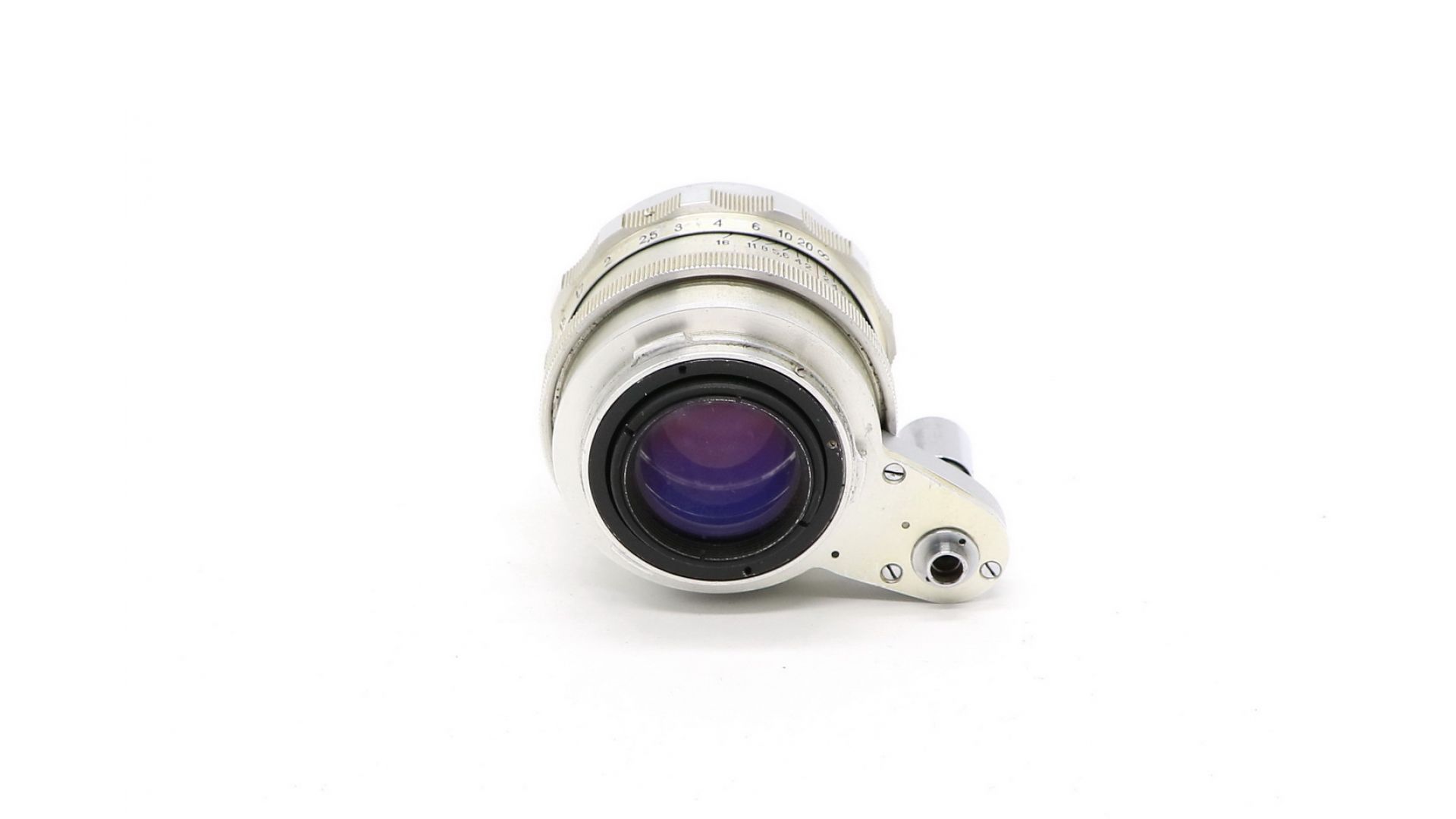 – Отличительные особенности: светосила f/2.0, фокусное расстояние 58 мм, рабочий отрезок 42 мм, ход кольца фокусировки 210°, классическая оптическая схема