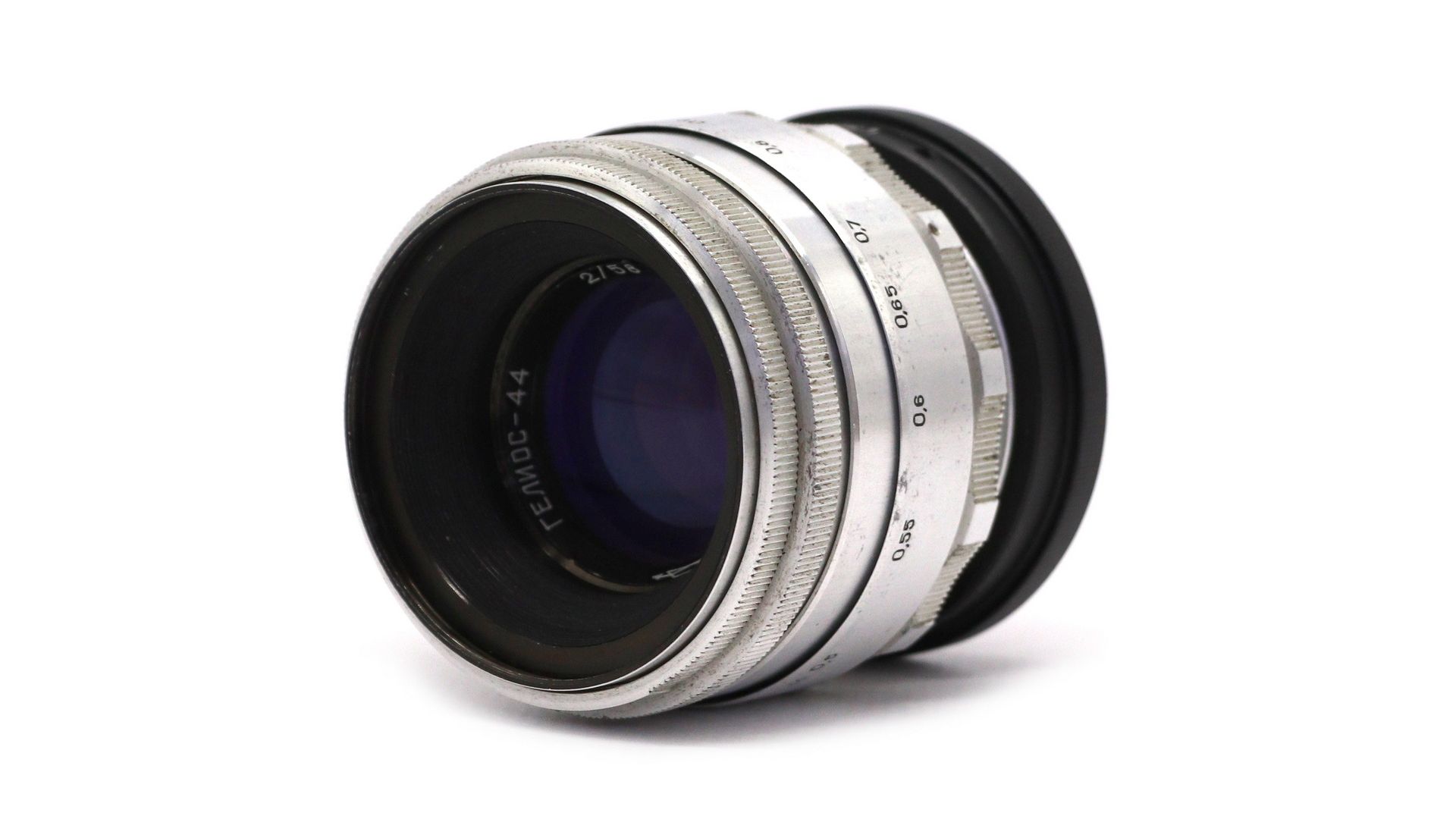 Гелиос-44 58mm f/2 (М39, 13 лепестков) в комплекте с адаптером на Sony E/FE — это редкая ранняя версия объектива в серебристом корпусе, которая ценится выше массовых серий. Главное сокровище этой модели — 13-лепестковая диафрагма, обеспечивающая безупречные характеристики размытия.