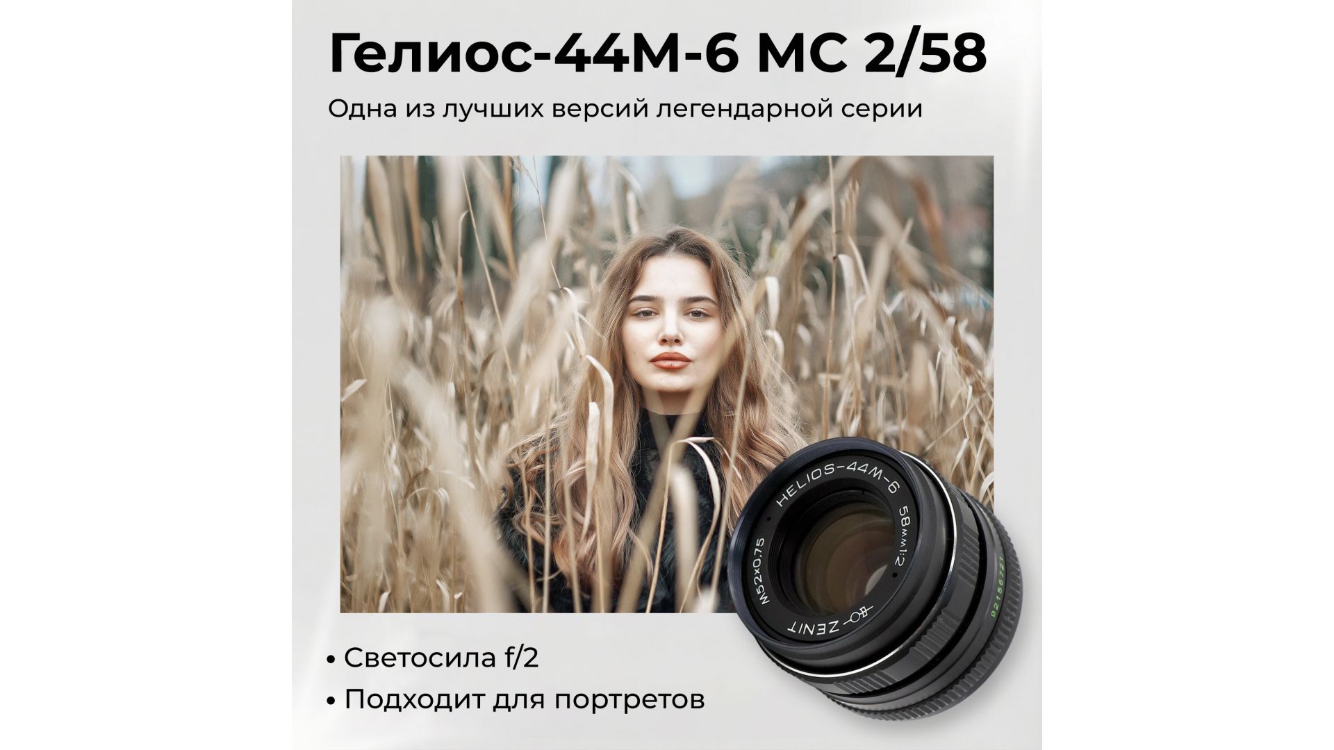 Светосила f/2.0 и фокусное расстояние 58 мм — оптимально для портретов