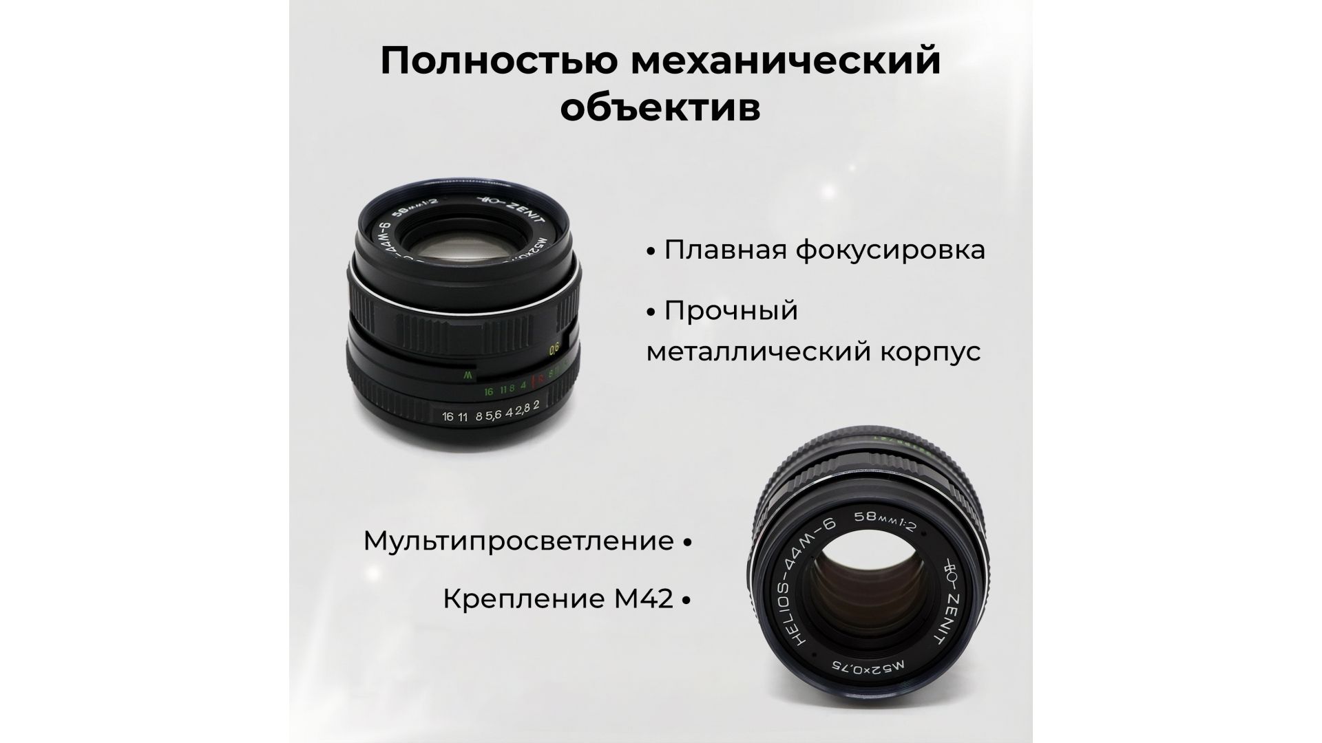 Мануальный советский объектив Гелиос-44М-6 МС 2/58 М42