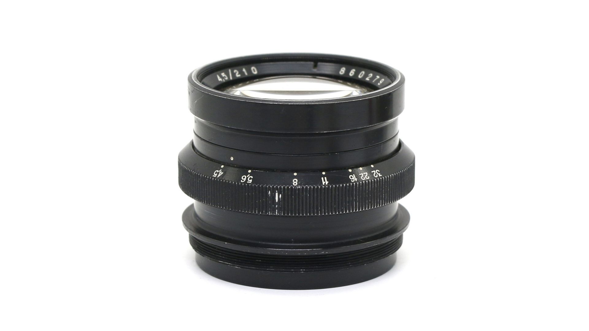 Фокусное расстояние – 210 мм. Диапазон диафрагмирования: f/ 4,5 - f/ 32.и Экземпляр имеет 20 лепестков диафрагмы. Оптическая схема — классический ретрофокусный Тессар (4 элемента в 3 группах), Боке тессаровское, спокойное. Сочетание светосилы и фокусного позволяет добиться отделения портрета от фона. Имеет хороший контраст. Благодаря своей схеме объектив хорошо справляется даже с контровым светом. При контровом свете наблюдается небольшое смещение цветов, но они остаются приятными, можно использовать как художественный прием.