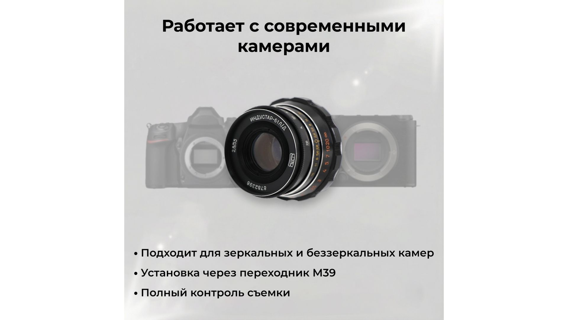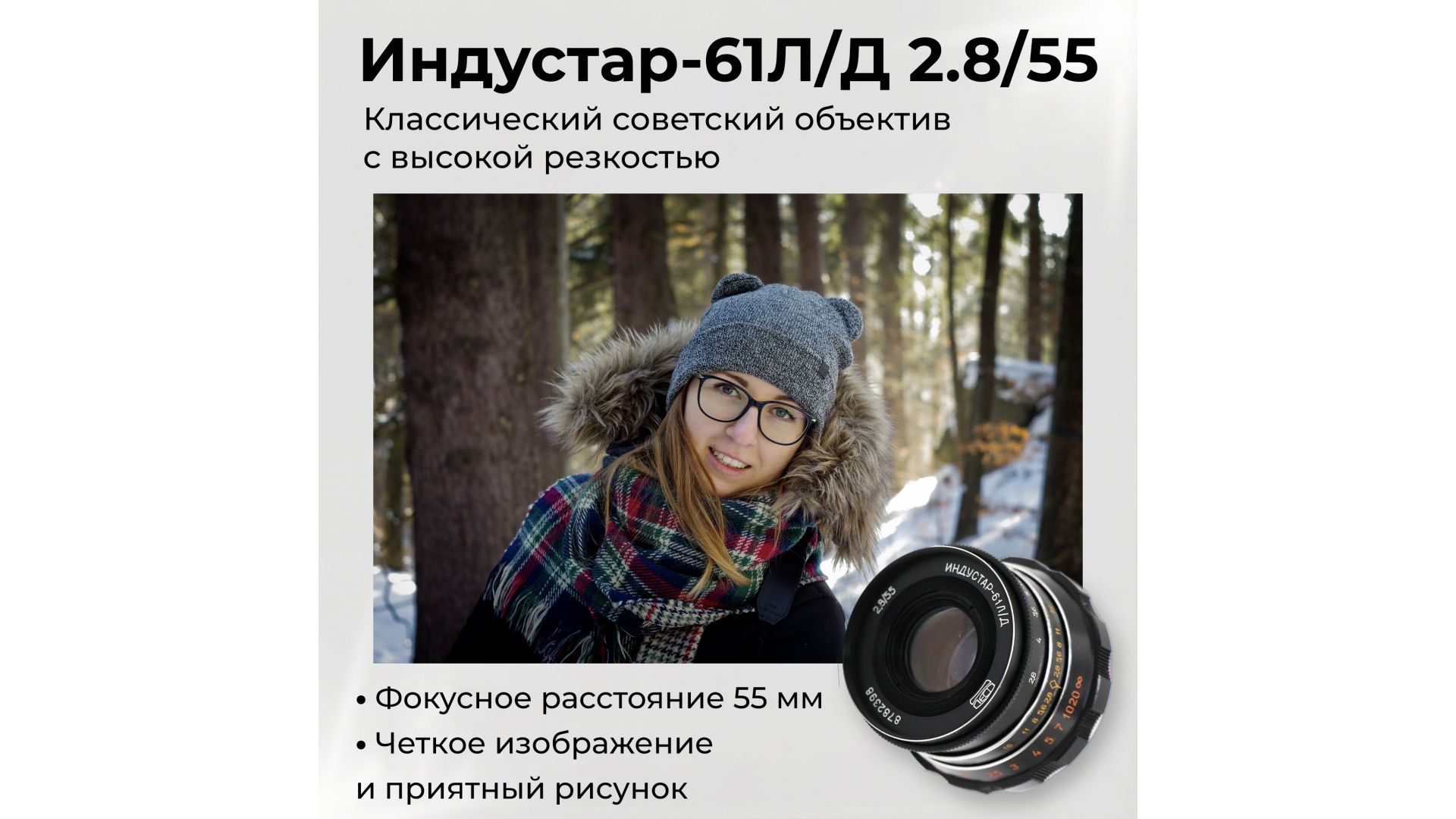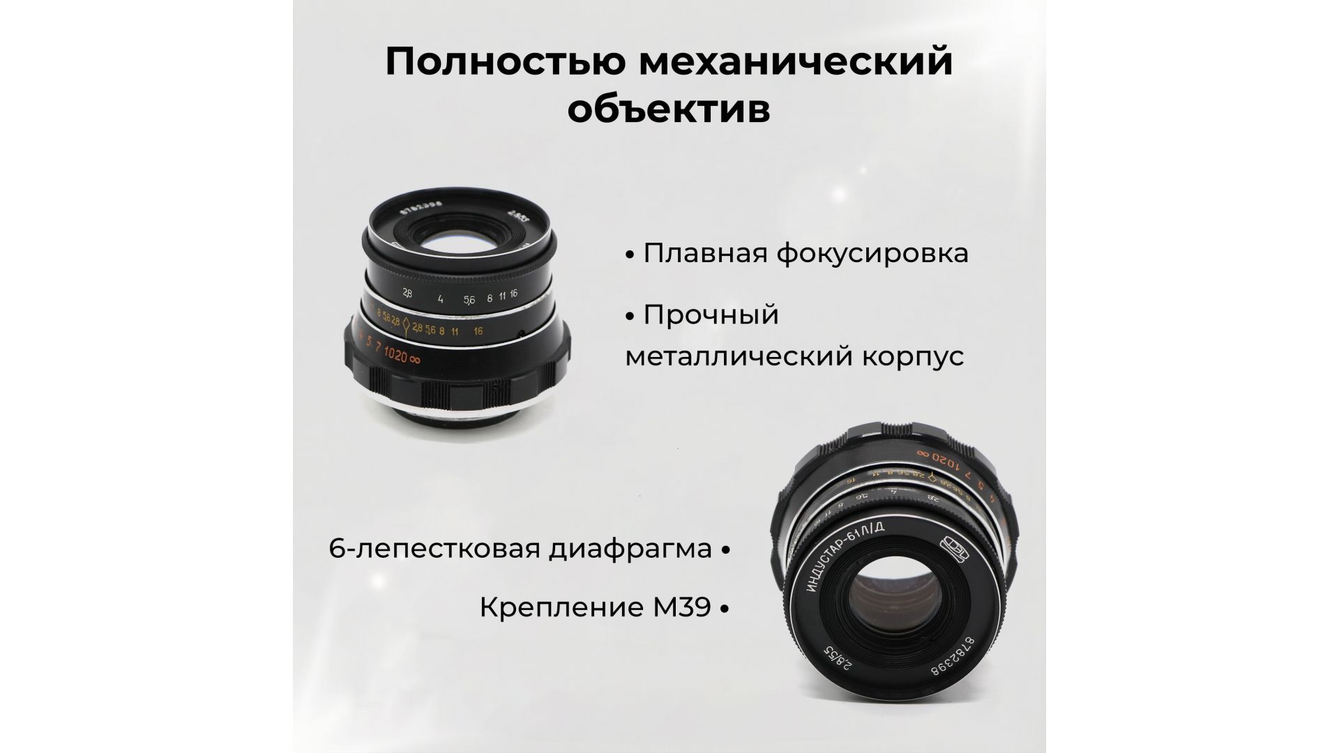 Индустар-61Л/Д 2,8/55 — советский объектив с высокой резкостью и классическим рисунком изображения, идеален для пленочной и адаптированной цифровой съемки.