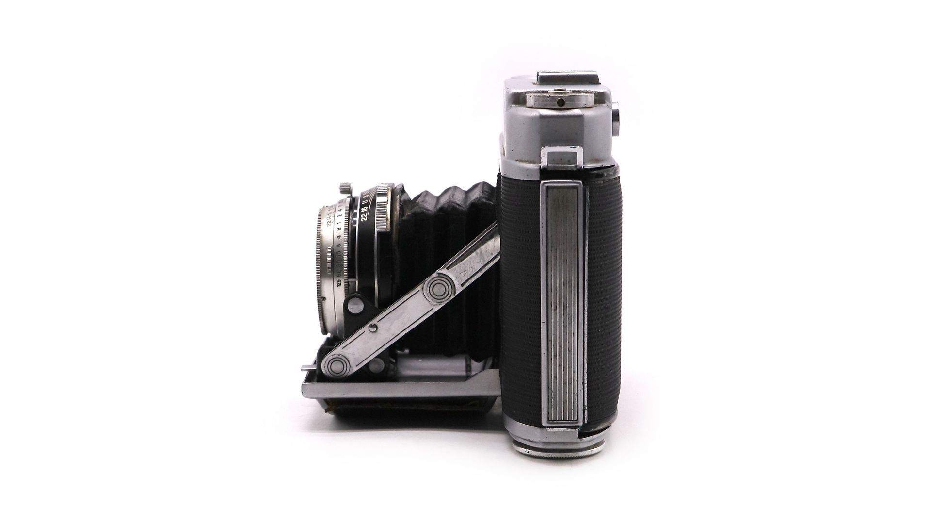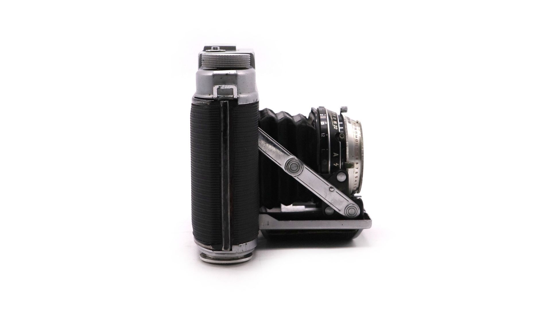 Взвод затвора и транспортировка плёнки — раздельные. Имеется блокировка от повторного экспонирования кадра. В то же время многократная экспозиция возможна, если спускать затвор не кнопкой на камере, а рычагом на самом затворе. Счётчик кадров с автоматическим сбросом при перезарядке. Корпус металлический со съёмной задней крышкой. Размер кадра 6×6 см.