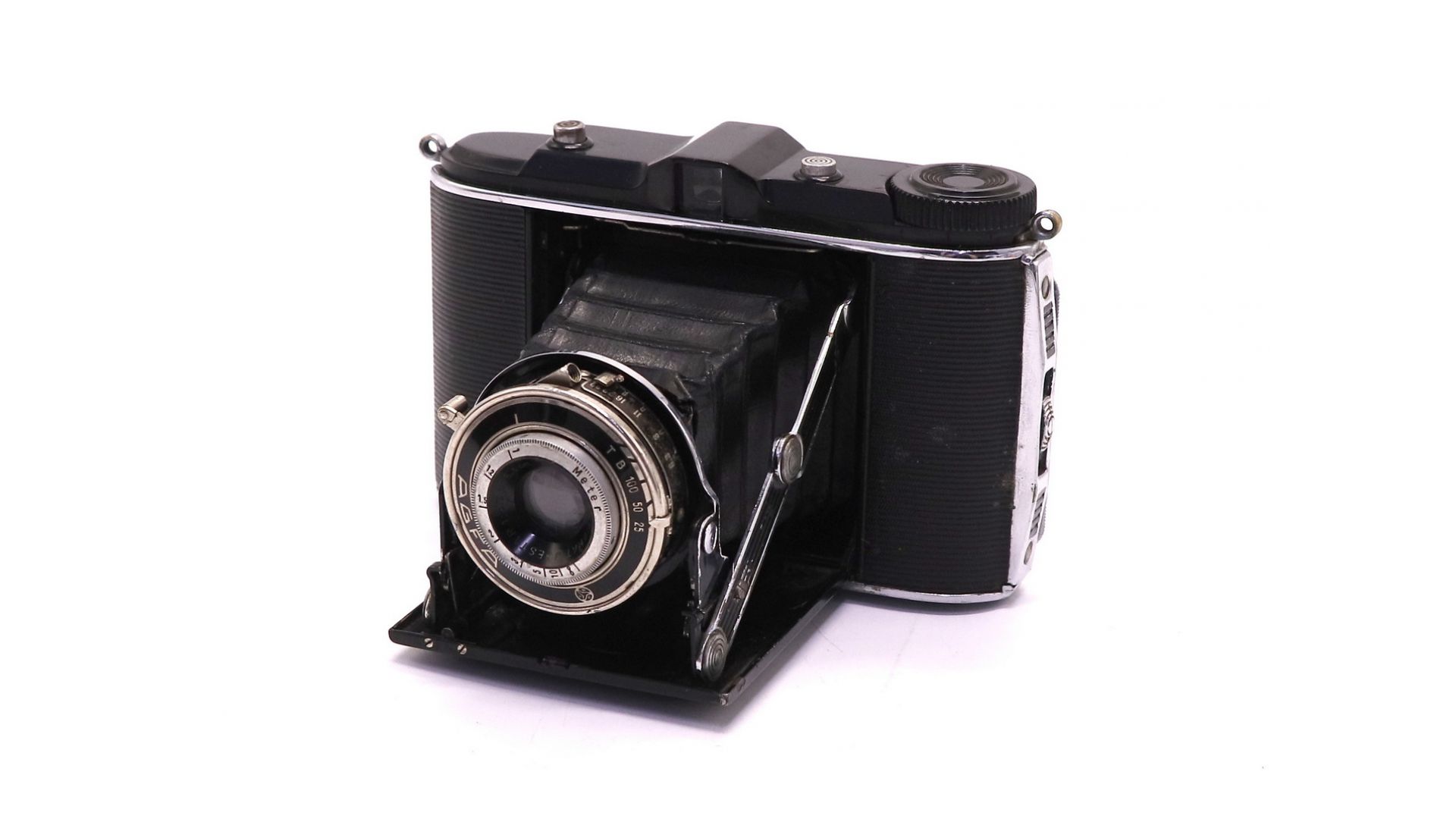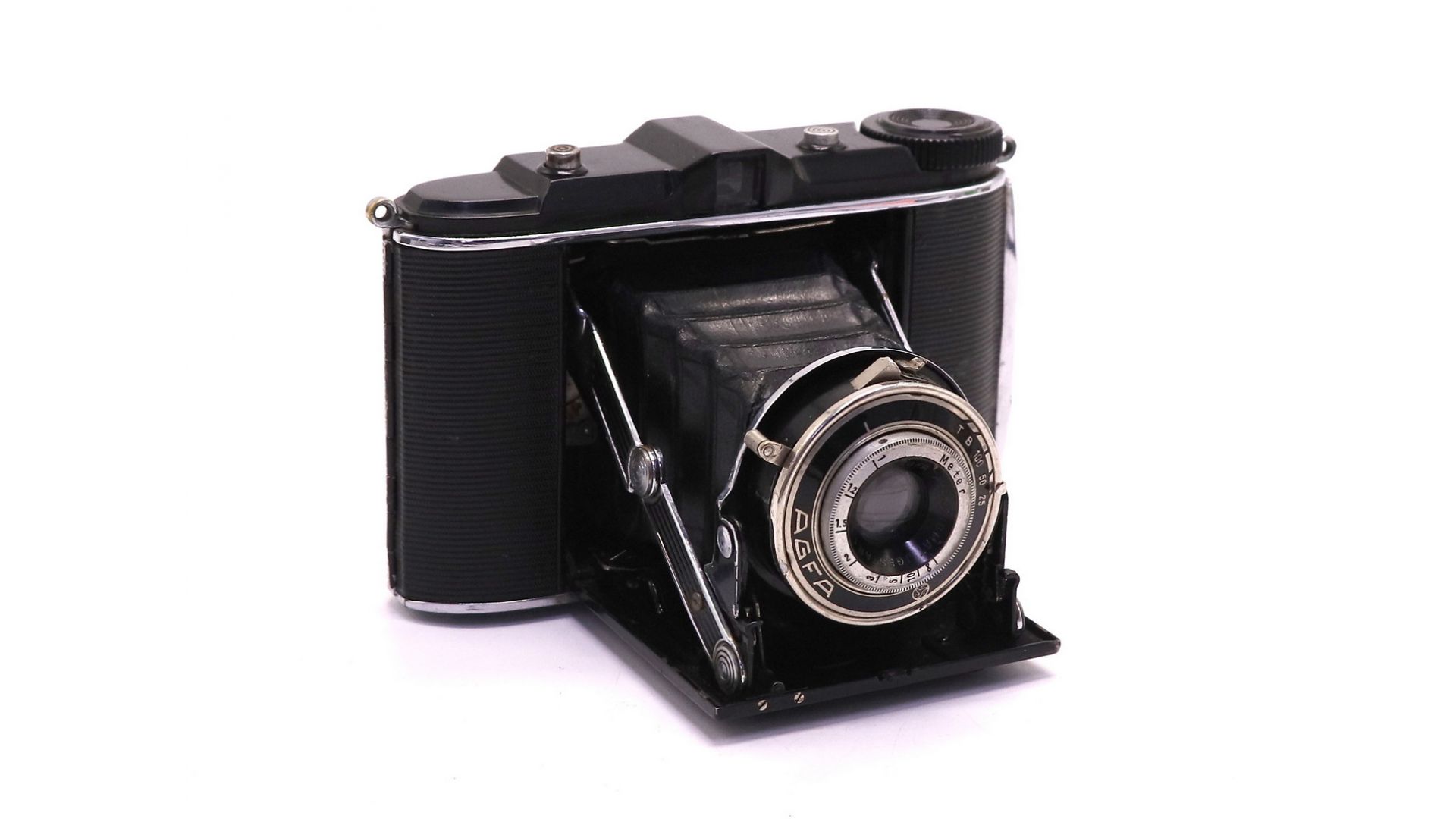 – Отличительные особенности: Классическая немецкая складная камера 1937–1942 годов выпуска от легендарной Agfa Kamerawerk . Модель отличается элегантным довоенным дизайном и верхней панелью из фирменного пластика "Trolitan" (на самых ранних версиях), что делает её узнаваемой среди коллекционеров.