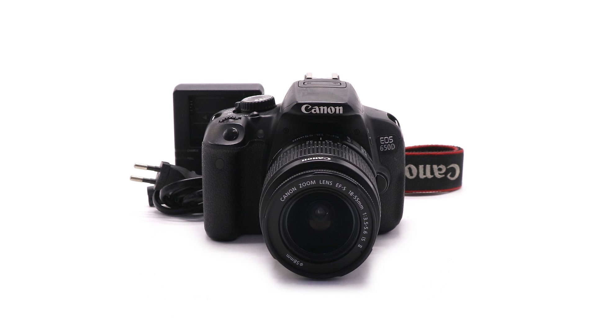 Комплектация:Объектив Canon EF-S 18-55mm f/3.5-5.6 IS II, аккумулятор, ремень, зарядное устройство.
