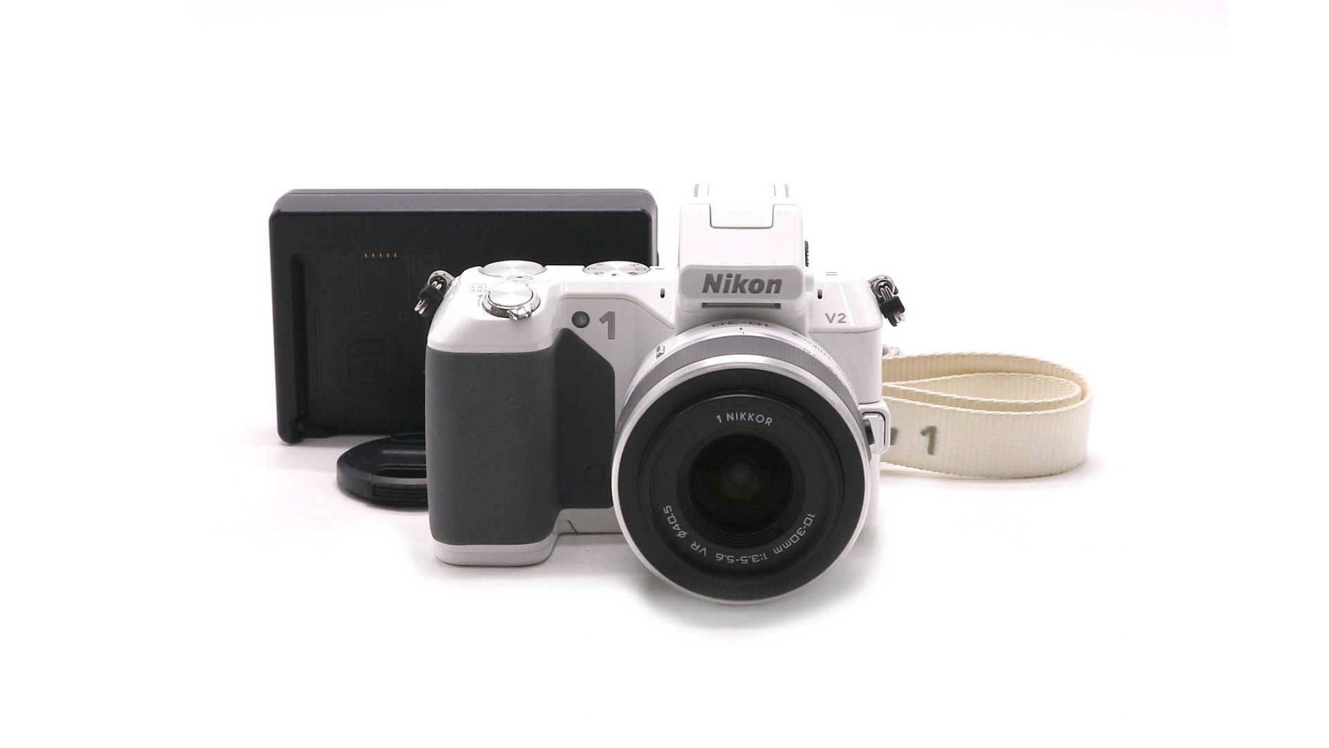 Комплектация:Ремень, передняя крышка, зарядное устройство, аккумулятор, объектив Nikon 1 Nikkor 3.5-5.6/10-30mm.