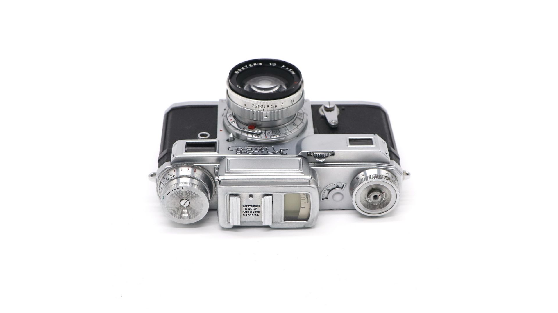 Комплектация:Коробка, кофр, объектив Юпитер-8, документы, передняя крышка объектива, спусковой тросик.