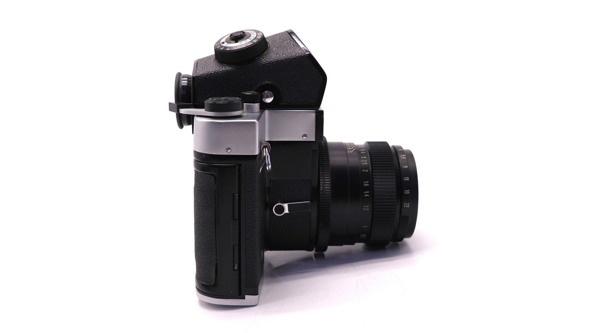 Комплектация:Коробка, объектив Вега-12Б, передняя крышка, пентапризма TTL, шахта, удлинительные кольца, ремень.