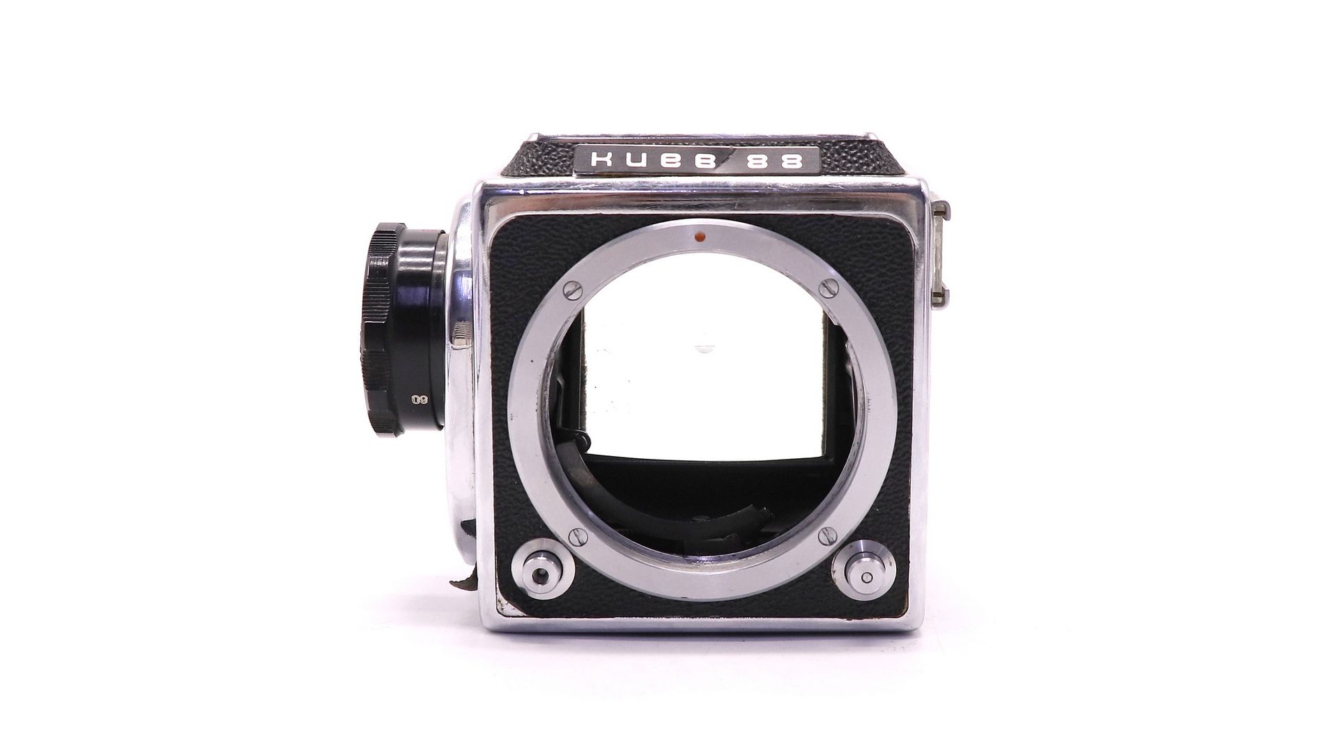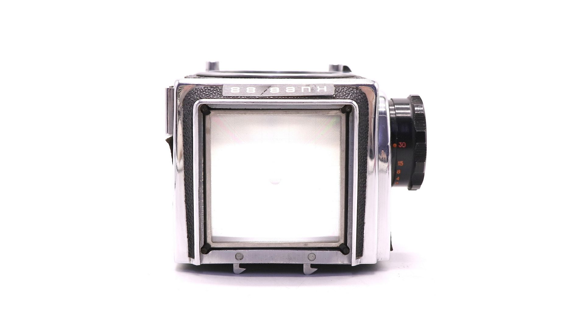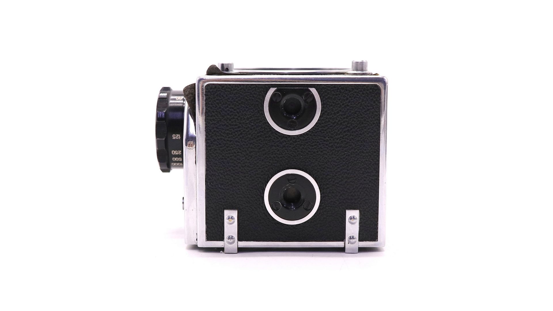 Затвор шторный фокальный с металлическими гофрированными шторками из нержавеющей стали с диапазоном выдержек от 1/2 до 1/1000 с и «В». Синхроконтакт «Х», центральный синхроконтакт. Выдержка синхронизации от 1/30 с и более. Тип применяемого фотоматериала — рольфильм. Размер кадра 6×6 см, на плёнке типа 120 получается 12 кадров.