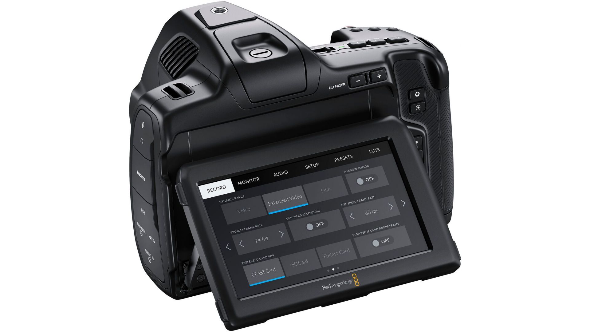 Blackmagic Design Pocket Cinema Camera 6K Pro — профессиональная кинокамера, которая помещается в вашей руке! Легенда среди карманных кинокамер. Этот аппарат от Blackmagic Design — культовая модель для создателей контента, сочетающая наследие бренда с инновационными технологиями. Полноценный сенсор Super 35 и поддержка съёмки в 6K обеспечивают невероятную детализацию и свободу в постпродакшене. Встроенные ND-фильтры (2, 4, 6 ступеней) и яркий встроенный HDR-дисплей завершают профессиональный комплект. Мощный аккумулятор увеличенной емкости, два слота для карт памяти и возможность подключения via HDMI и mini-XLR. Камера готова к работе в самых требовательных условиях. Идеально для: создания кино, музыкальных клипов, рекламы и видеоблогинга премиум-класса. Реализуйте ваш творческий замысел без компромиссов!