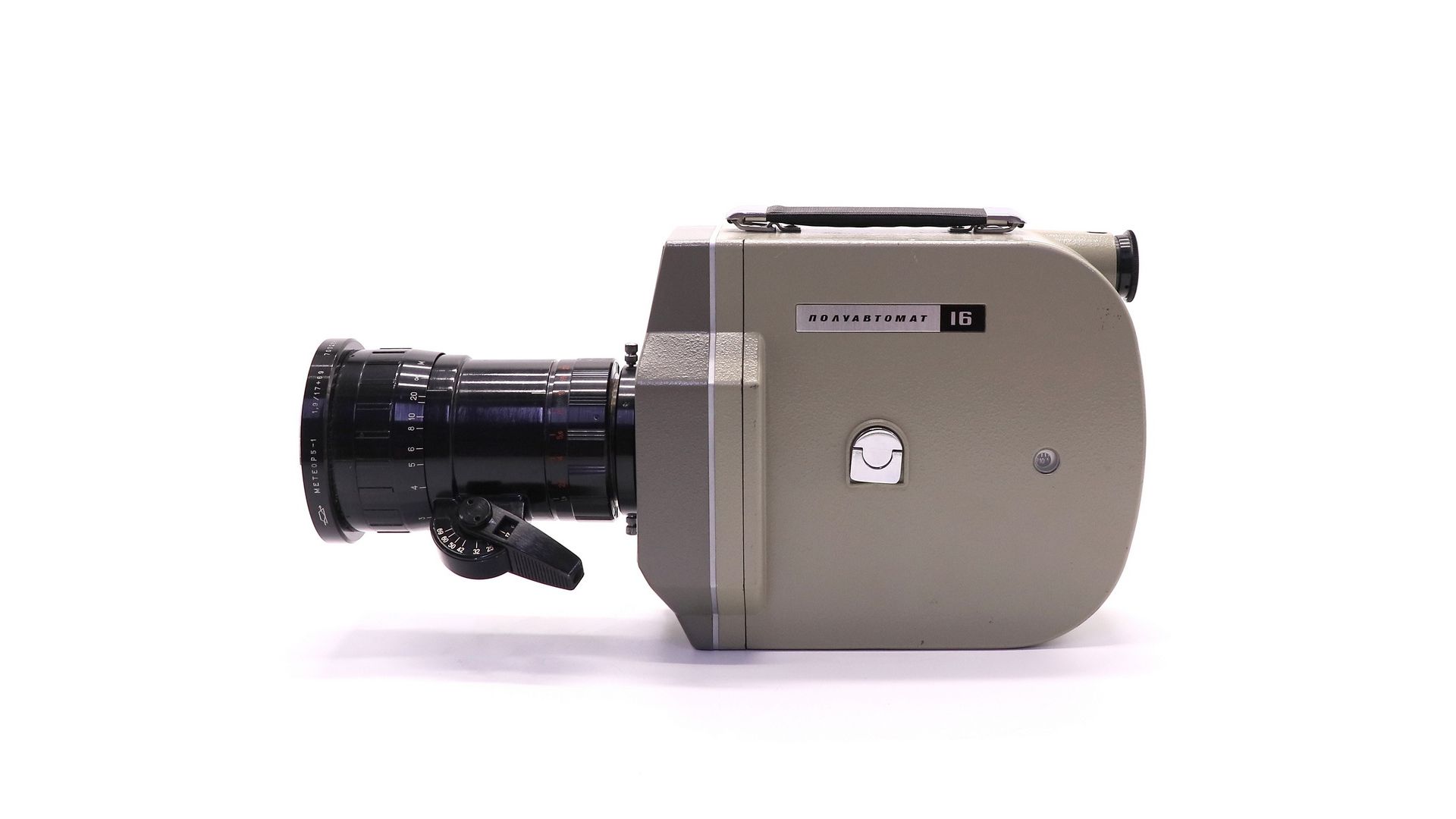 Киносъемочный аппарат с кассетной зарядкой, предназначенный для съемок кинофильмов на различные темы и в самых различных условиях. Рассчитан на работу с 16-мм кинопленкой с односторонней или двусторонней перфорацией. Емкость кассеты - 30 м кинопленки.Полуавтоматическая установка диафрагмы обеспечивают при съемке оперативность и исключает возможность ошибки в определении экспозиции. Кинокамера снабжена высококачественным объективом "Метеор-5-1" с переменным фокусным расстоянием, позволяющим плавно изменять масштаб изображения и производить съемки в условиях пониженной освещенности. Сквозное беспараллаксное визирование позволяет снимать объекты с малых расстояний, оценивать глубину резкости по матовому стеклу и выразительнее строить каждую сцену.