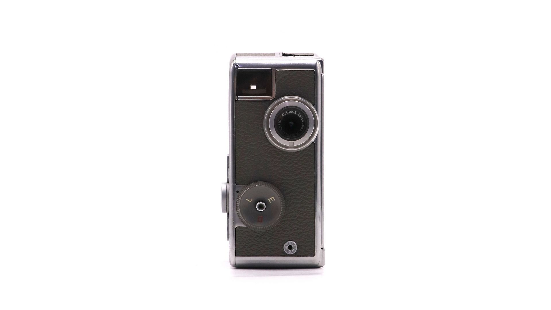 – Отличительные особенности: формат 8 мм, пружинный привод, металлический корпус с текстурным покрытием, автономная работа, ретро-дизайн