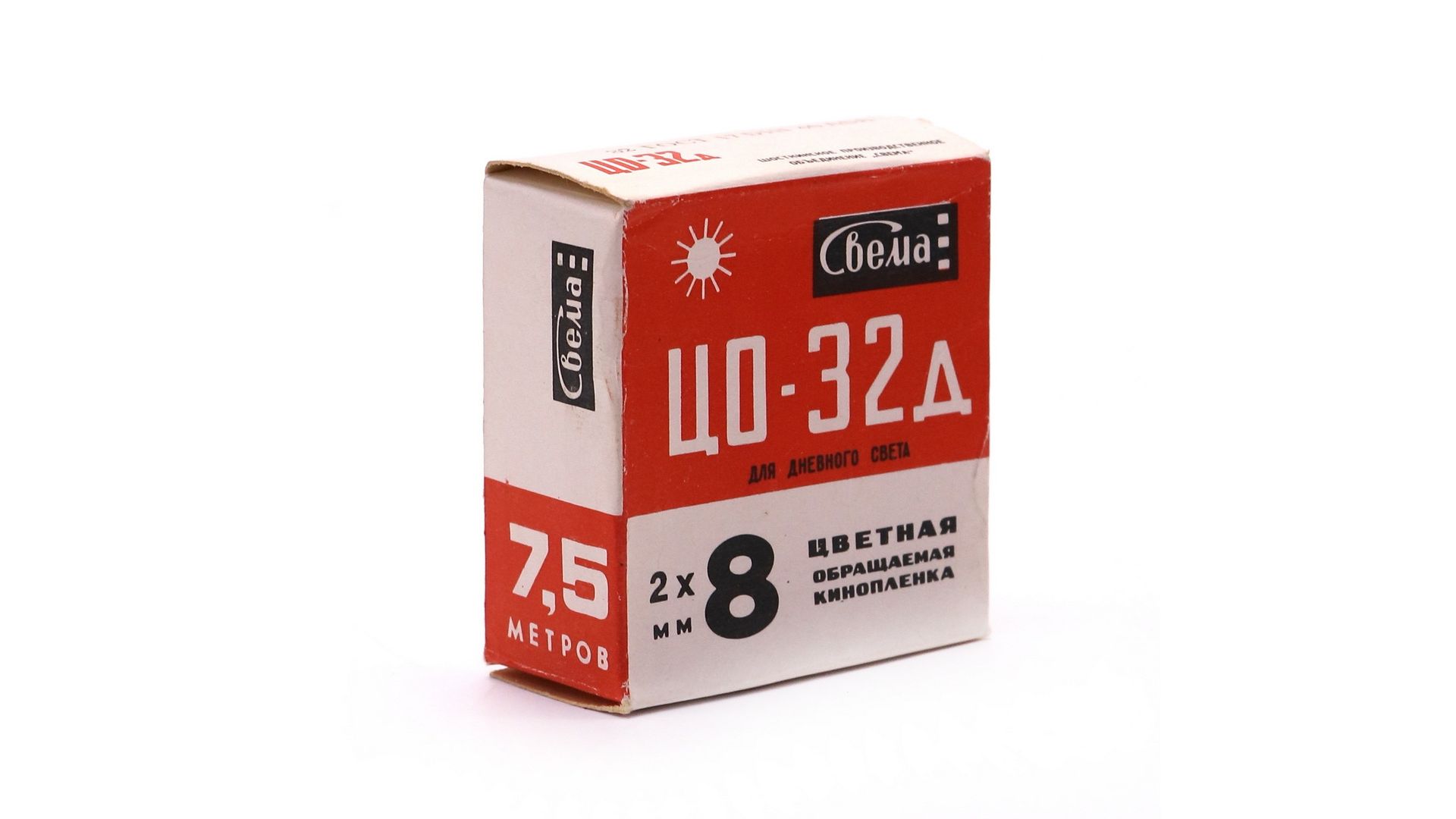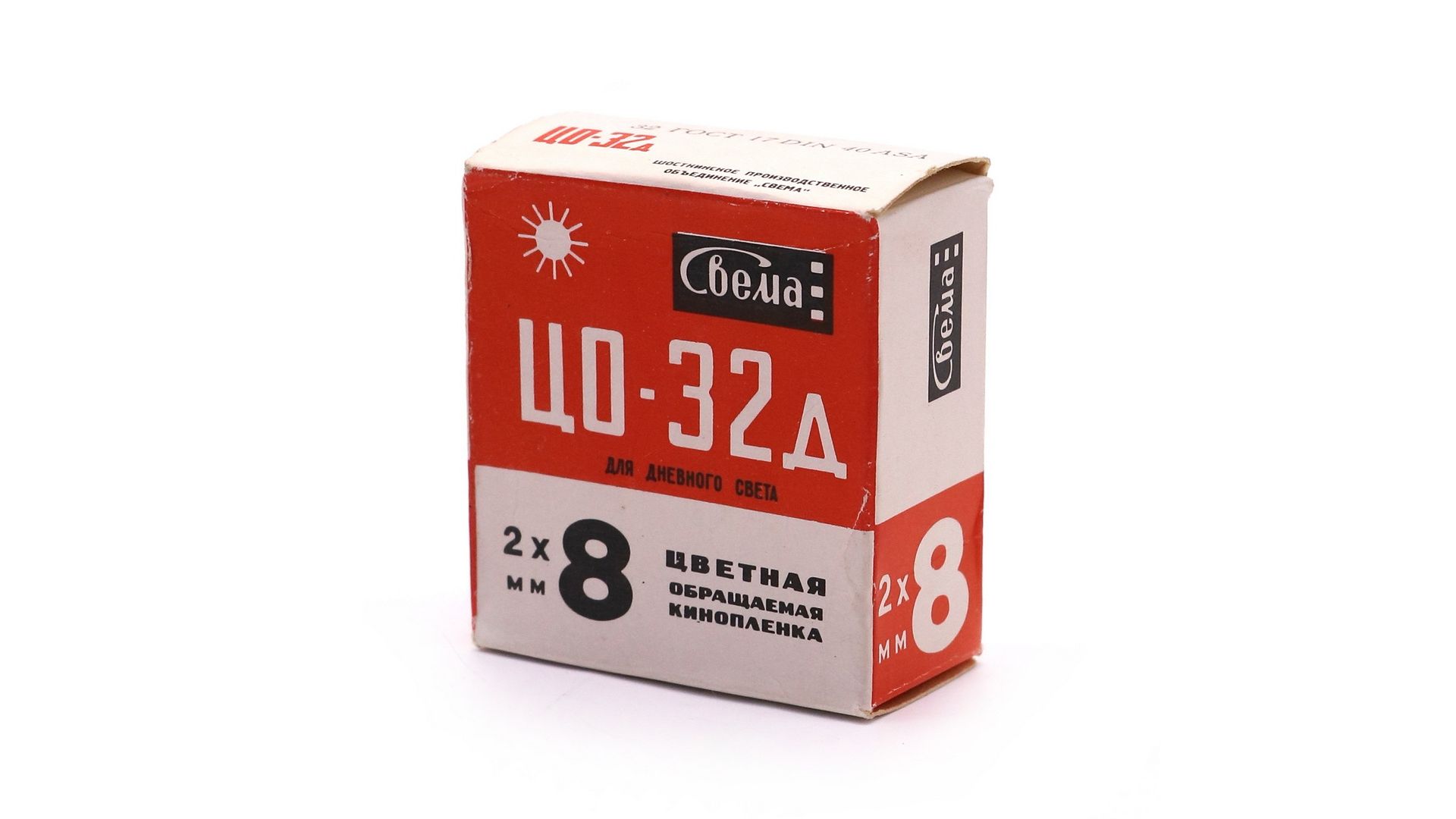 Советская цветная обращаемая киноплёнка для узкой 8-мм кинокамер. Сбалансирована для дневного освещения (5500К). Редкий раритетный носитель для любительского кино.
