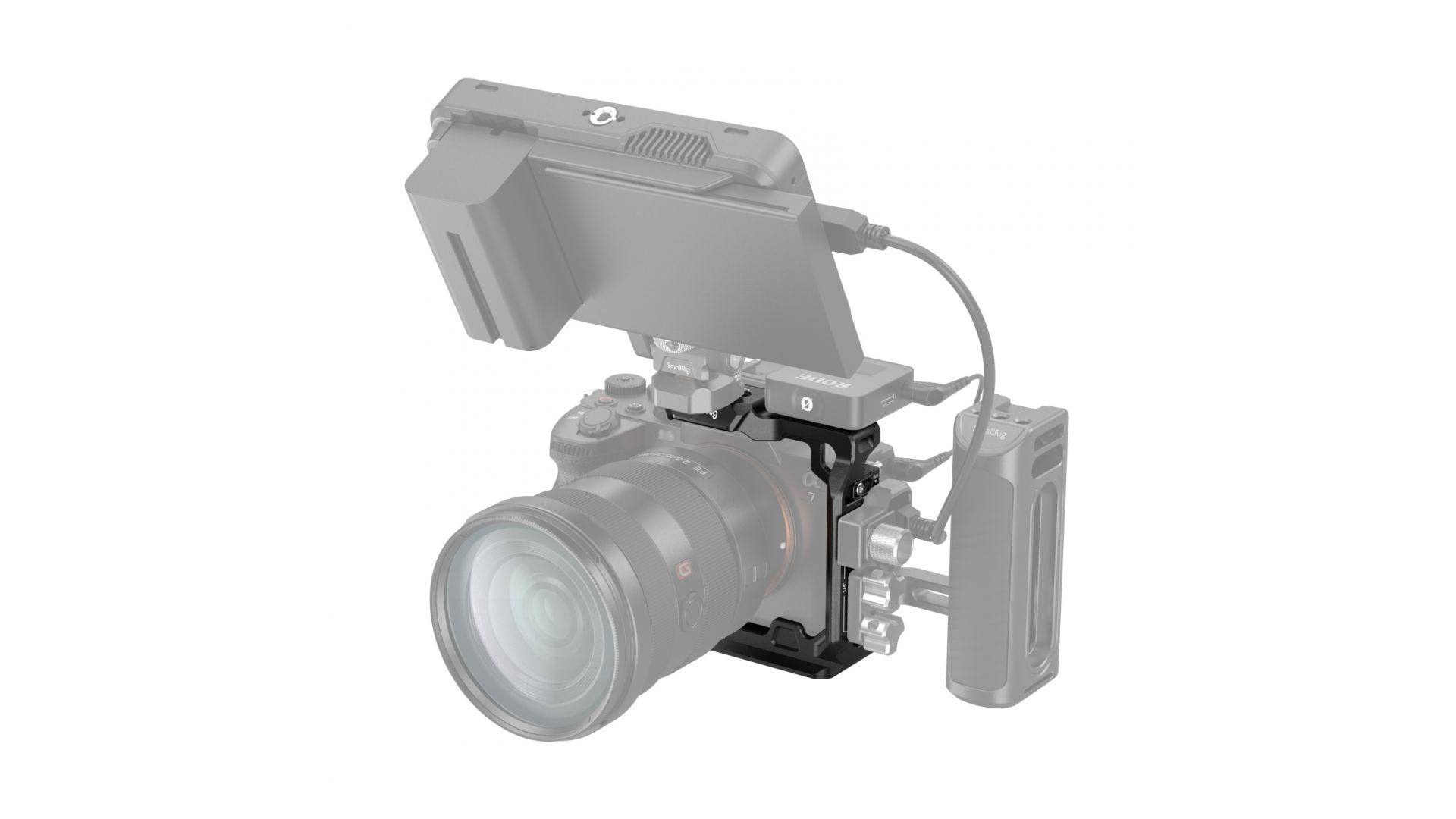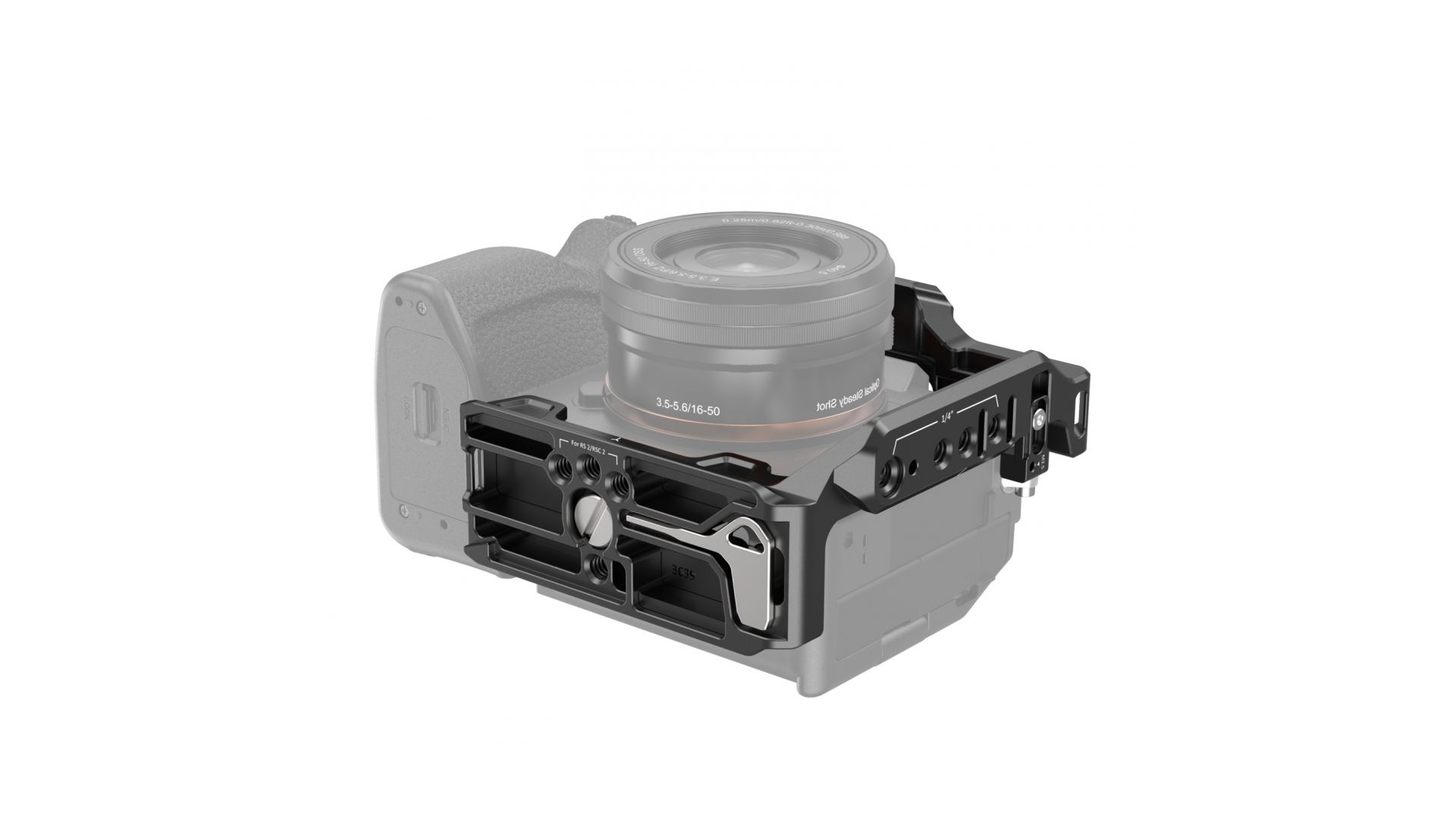 Клетка SmallRig 3639 для цифровых камер Sony A7IV/A7SIII/A1/A7RIV предназначена для установки необходимого для съемки оборудования и дополнительной защиты. Она надежно крепиться к камере винтом 1/4" и дополнительно фиксируется с левой стороны винтом М2.5, что исключает возможность ее проворачивания относительно камеры.