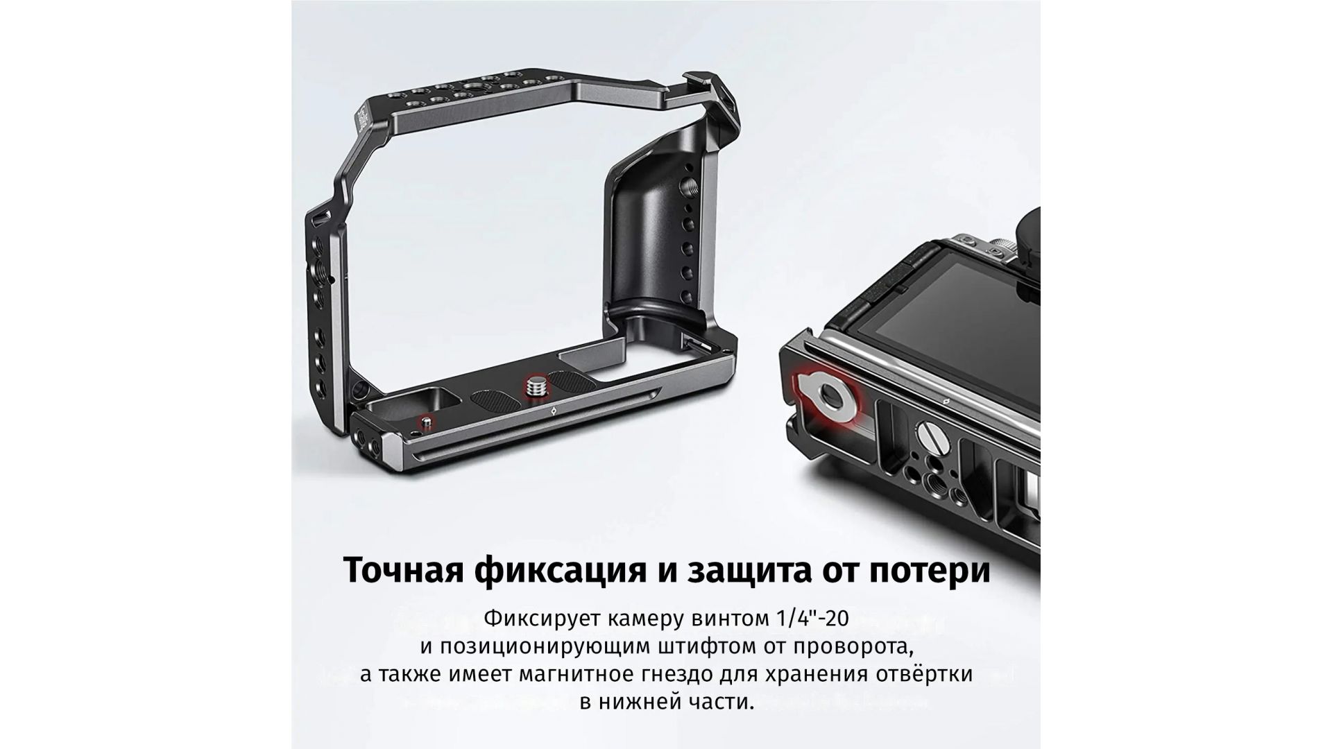 Крепление камеры через разъём 1/4" с анти-поворотным штифтом для надёжности