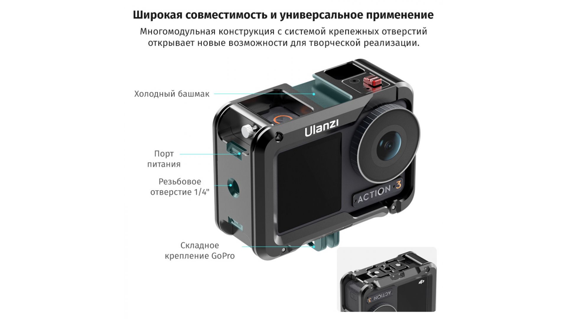 Комплектация:Клетка Ulanzi OA-14 3204 для DJI Osmo Action 3 / 4