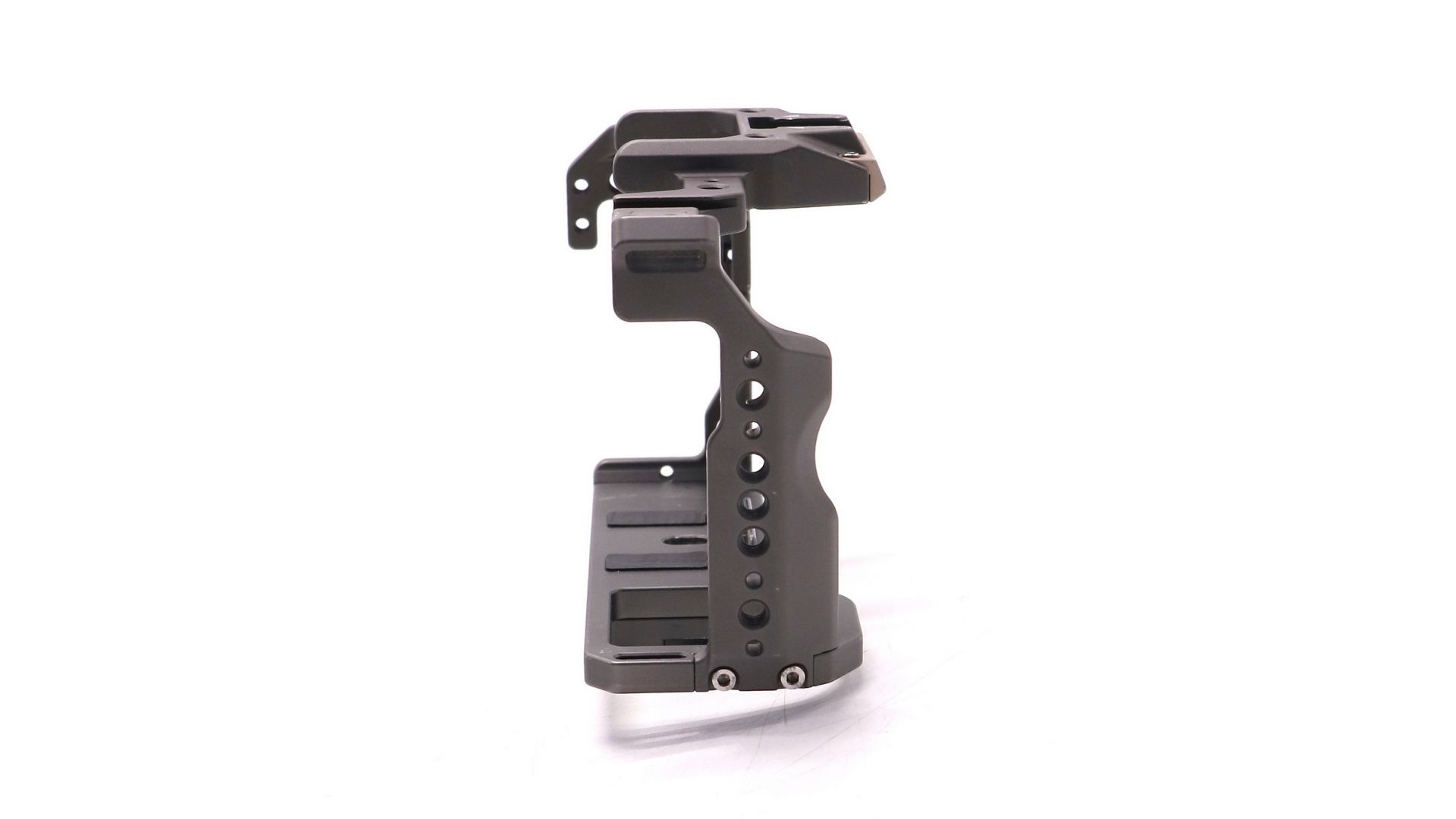 Главная особенность — множество точек крепления. На клетке расположены многочисленные резьбовые отверстия 1/4" и 3/8", а также разъемы Cold shoe (холодный башмак) для установки микрофонов, рекордеров, LED-панелей и мониторов. В комплекте часто идут дополнительные боковые рукоятки (хенд-грипы), что делает транспортировку камеры более удобной и стабильной при съемке с рук.