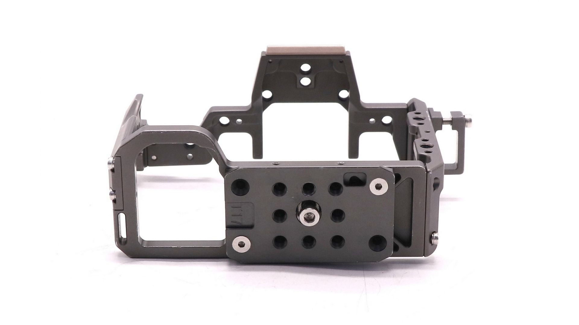 Клетка изготовлена из легкого и прочного авиационного алюминиевого сплава. Она плотно облегает камеру, защищая ее от ударов, царапин и падений. Конструкция обеспечивает свободный доступ ко всем разъемам, отсеку для батареи и карт памяти, а также к поворотному экрану без необходимости снимать клетку.