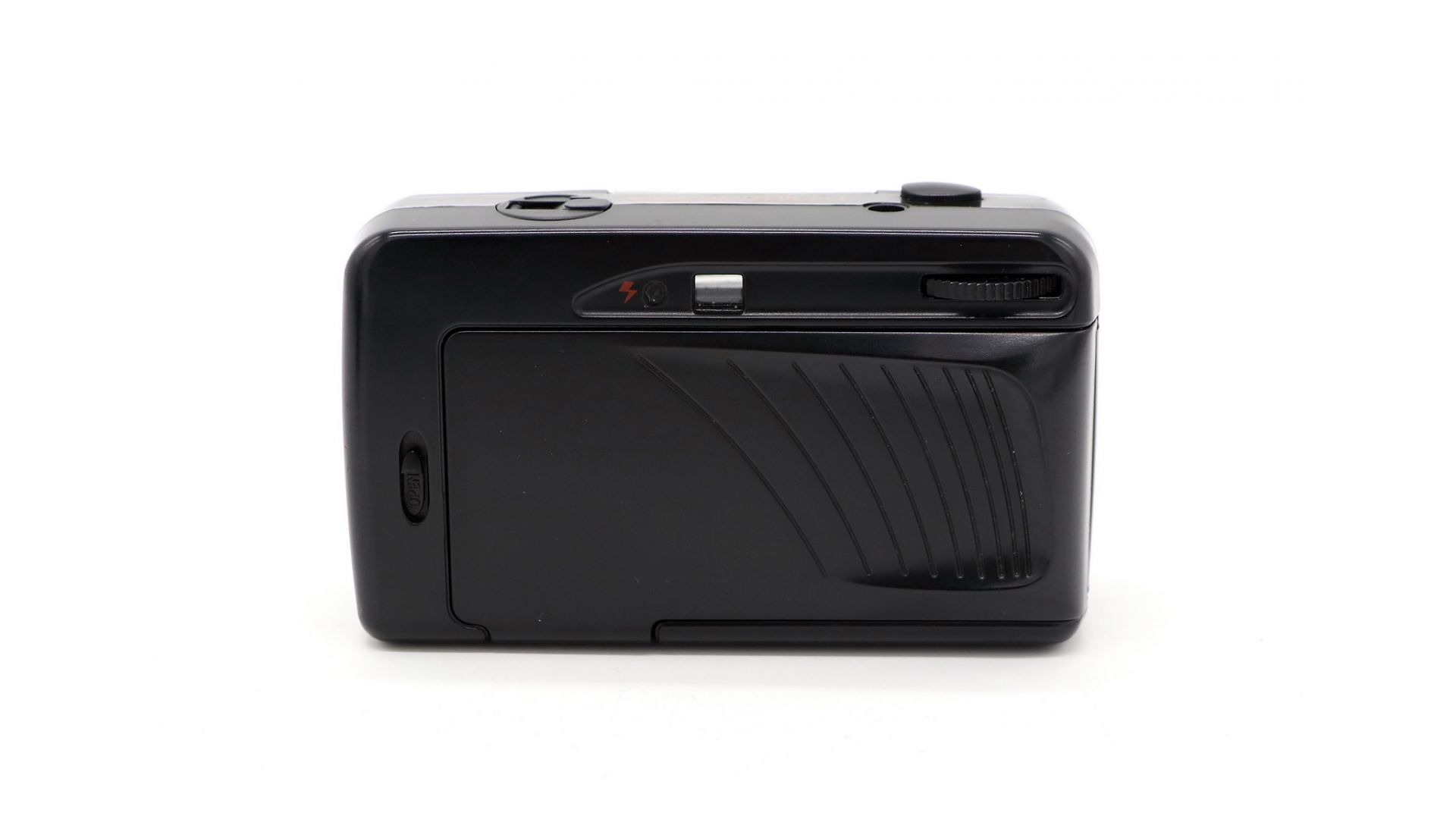 Широкоугольный объектив 28 мм с диафрагмой f 5.6, который защищен сдвижной крышкой. Конструкция объектива 3 элемента в 3 группах. Дистанция фокусировки от 1,2 метров до бесконечности. Выдержка 1/125 секунды. Ручная перемотка и продвижение пленки. Вспышка встроенная с возможностью выключения, со светодиодной индикацией заряда.
