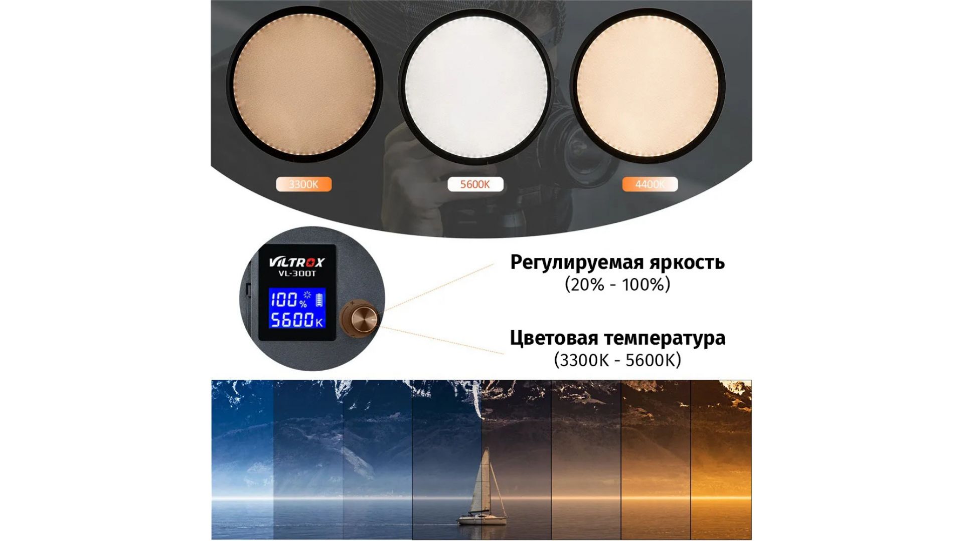 Цветовая температура: 3300K~5600K (можно регулировать)