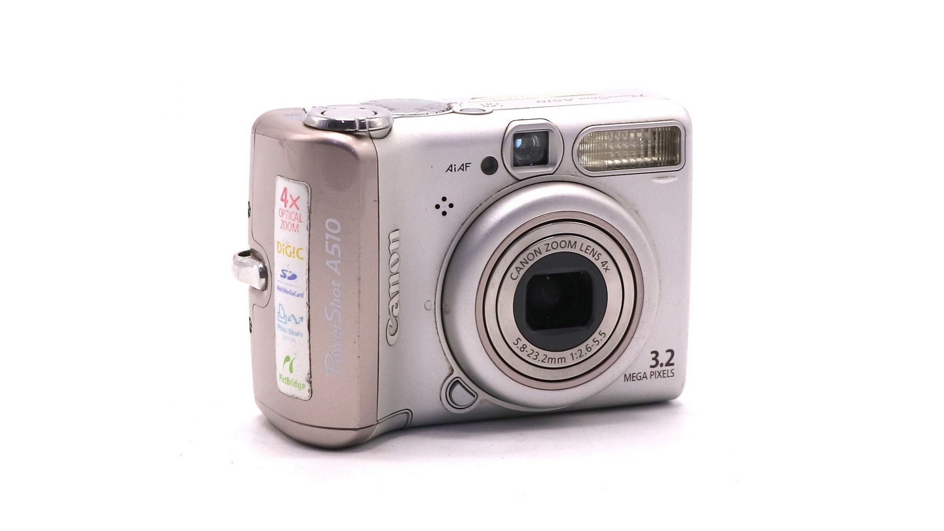 Компактная цифровая камера Canon PowerShot A510 — это гармоничный баланс компактности, простоты и качества. Оснащен 3,2-мегапиксельным сенсором и 4-кратным оптическим зумом (35-140 мм в эквиваленте). Ключевая черта — использование доступных батареек формата АА вместо редких аккумуляторов.