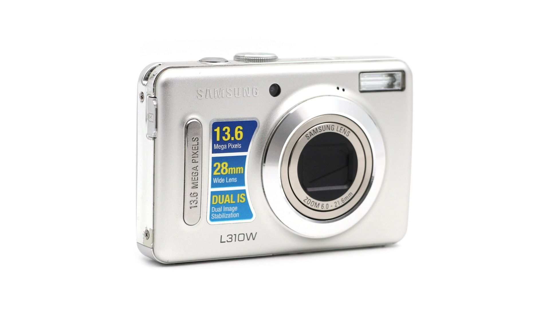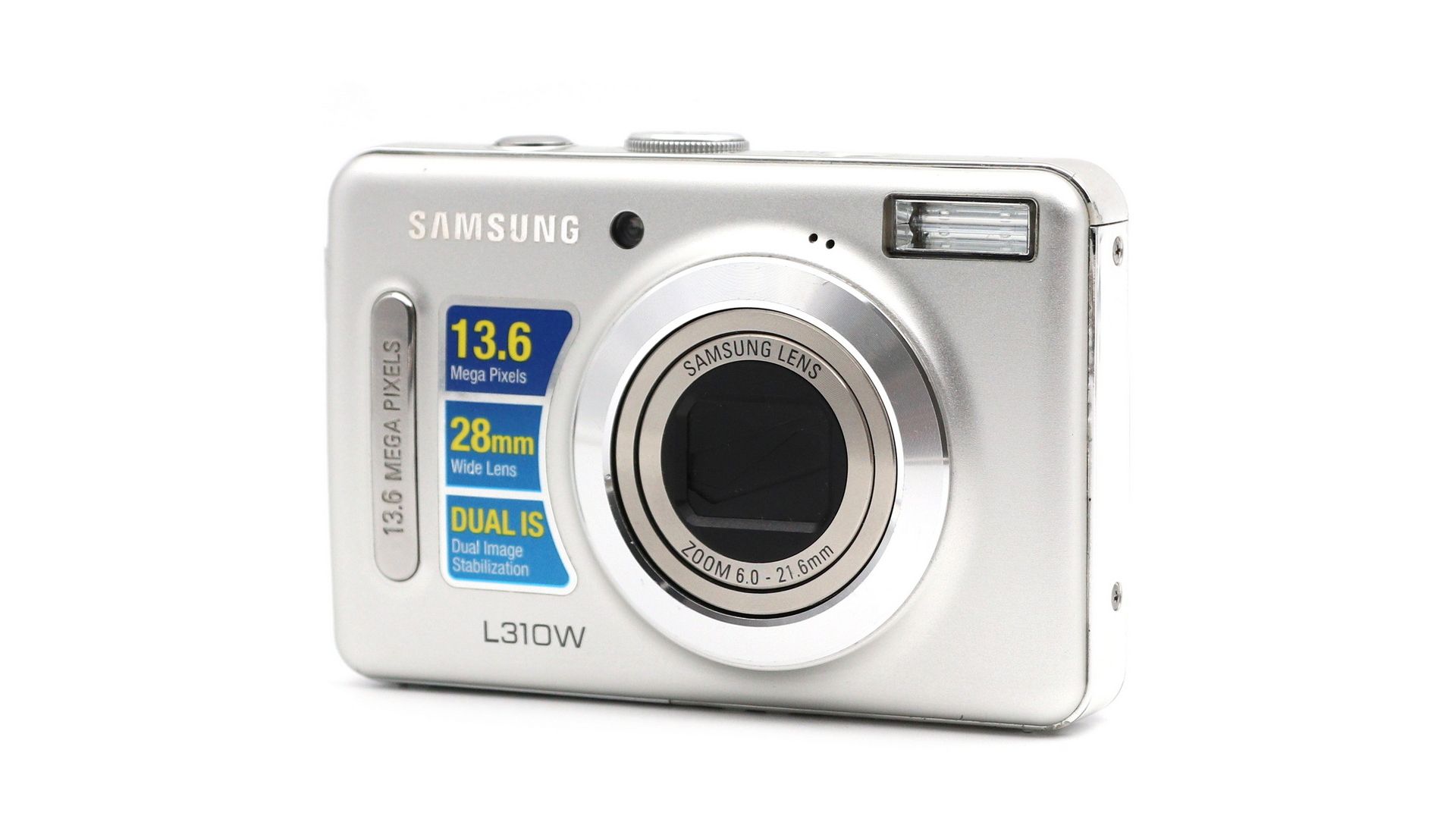 Samsung L310W — стильный и функциональный компакт, который в свое время задал планку для «карманных» камер. Главная фишка этой модели — широкоугольный объектив с 3.6-кратным зумом, позволяющий легко уместить в кадр и шумную компанию, и масштабный архитектурный вид.