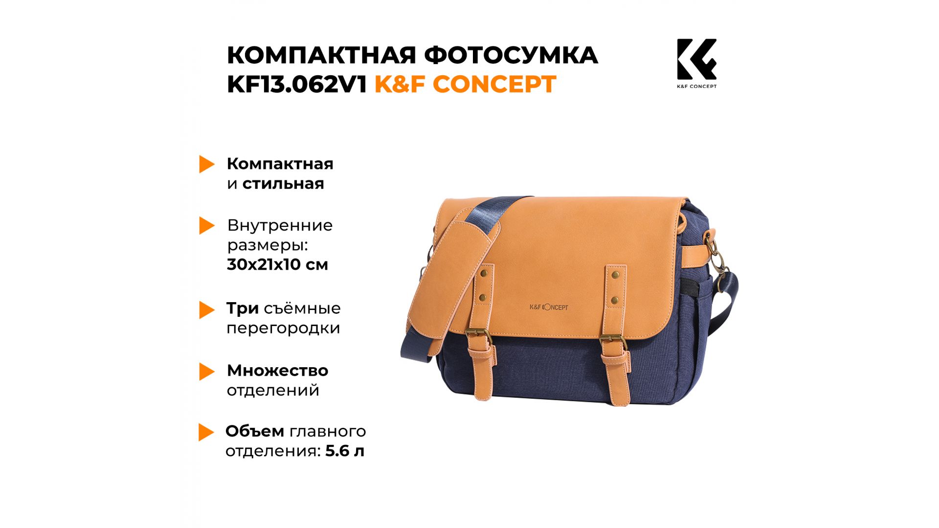 Компактная и стильная плечевая фотосумка K&F Concept KF13.062V1 рассчитана для транспортировки фотокамеры и одного или двух объективов. Внутренние размеры 30x21x10 см.
