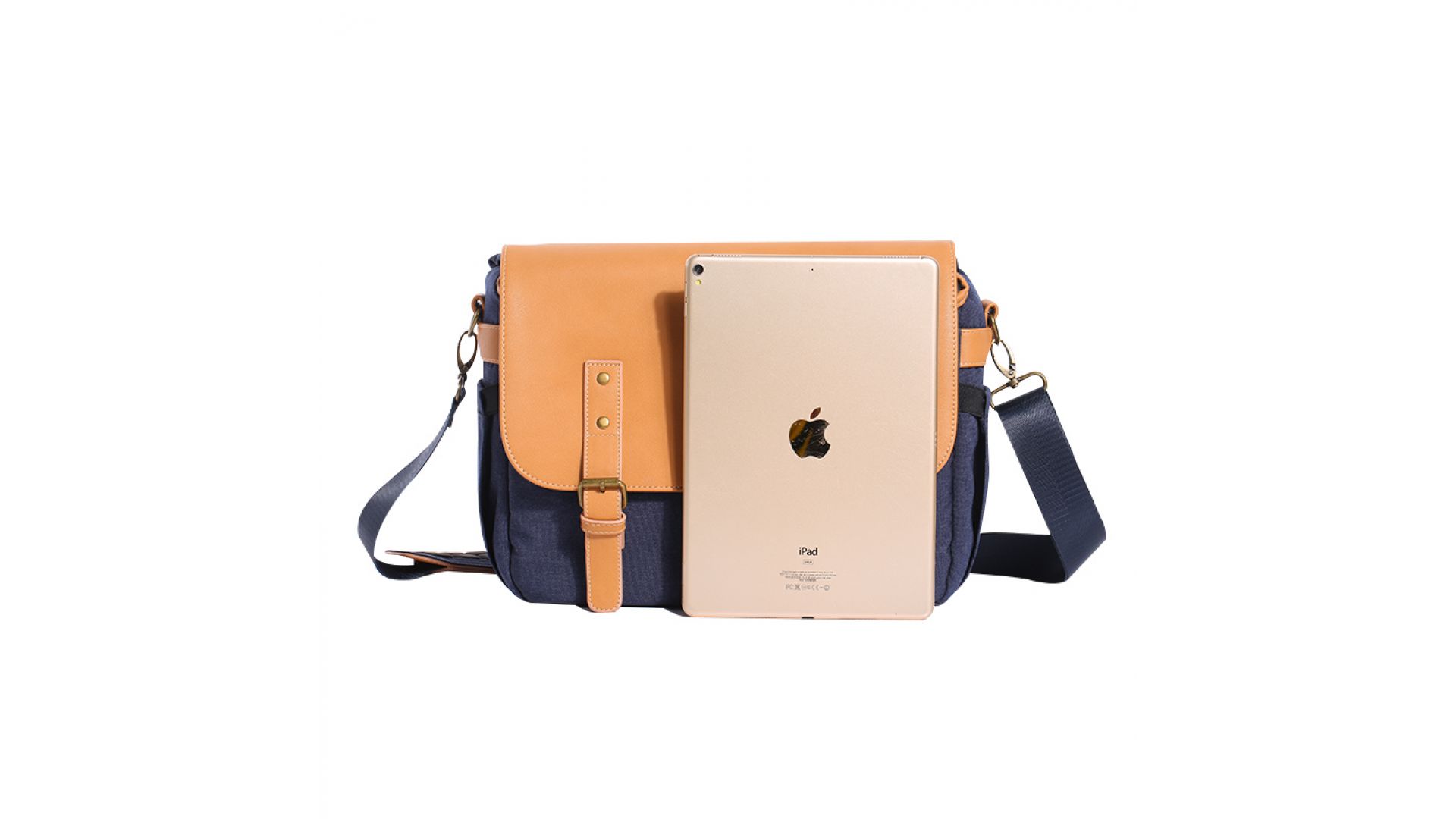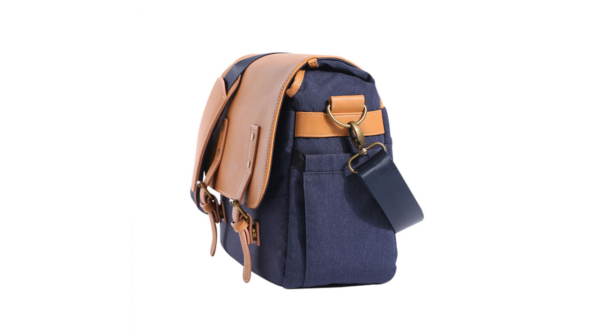 Снаружи сумка имеет три кармана: два по бокам и один сзади. Верхняя крышка фиксируется на магнитные заклёпки.
