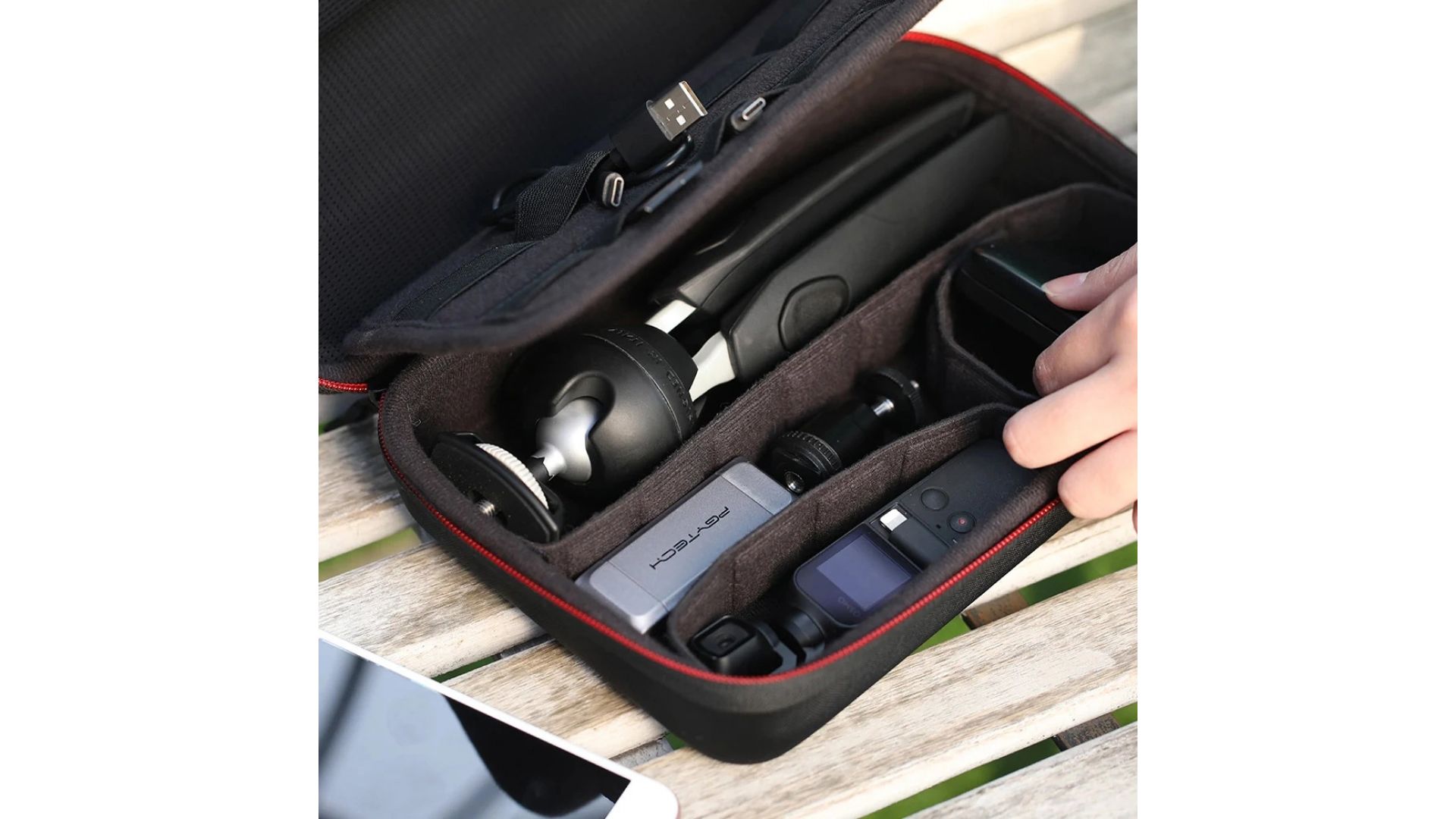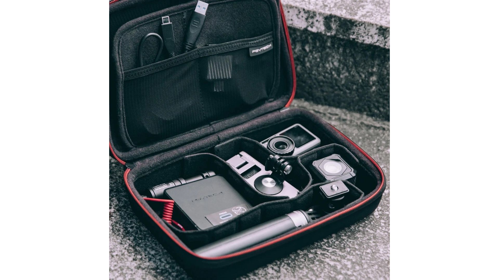 Этот удобный и стильный органайзер надежно защитит экшн-камеры, стабилизаторы, гаджеты и аксессуары (карты памяти, кабели, крепления и мини-штативы). В комплекте – 6 складных перегородок, позволяющих гибко организовать пространство под ваши нужды и предотвратить повреждения при транспортировке.
