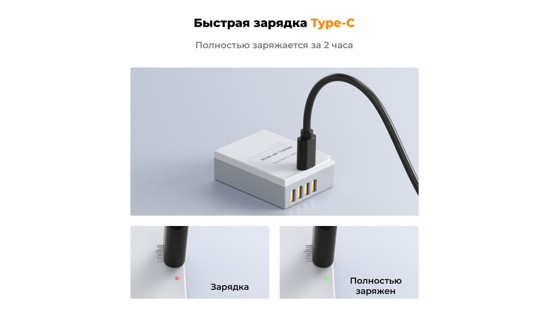 Комплектация:Аккумулятор (2шт), зарядный кабель Type-C - USB (2шт)