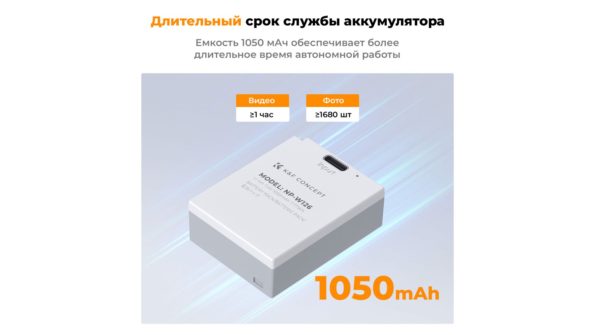Комплект аккумуляторов K&F Concept NP-W126 Type-C 1050mAh KF28.0048S1