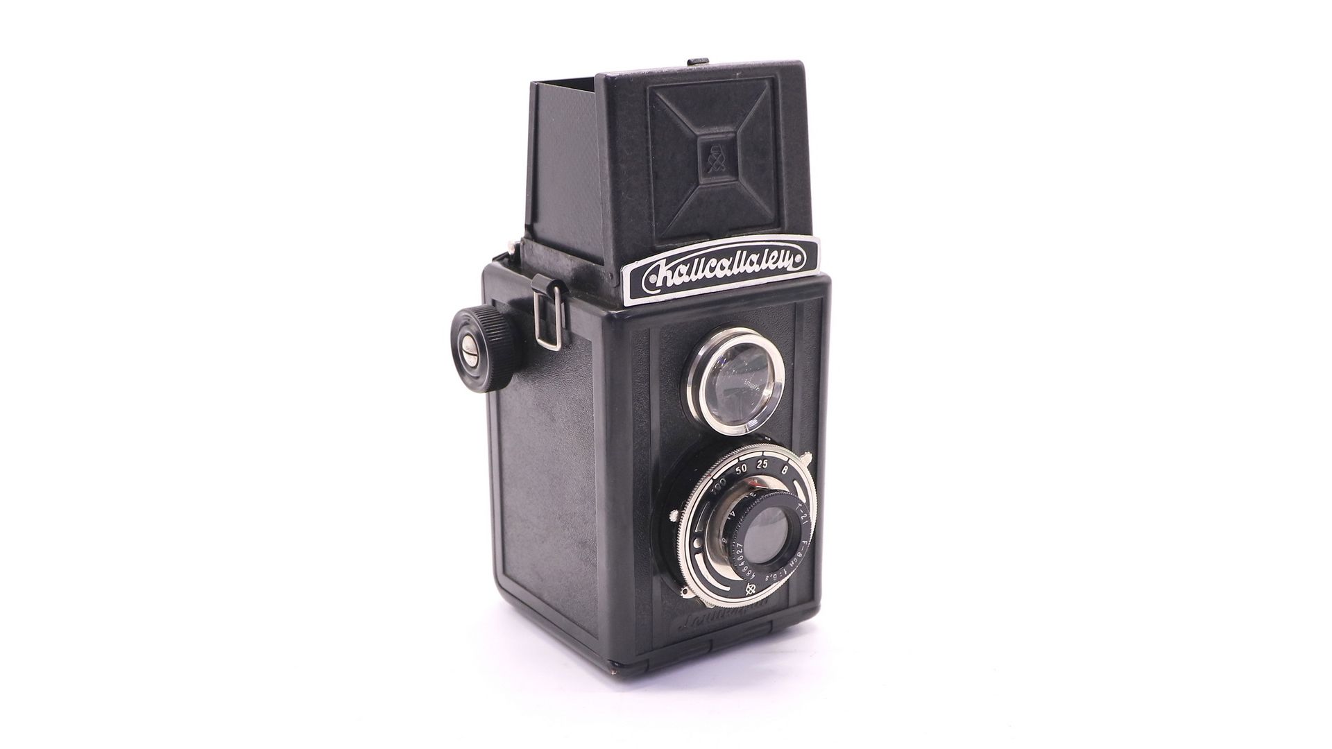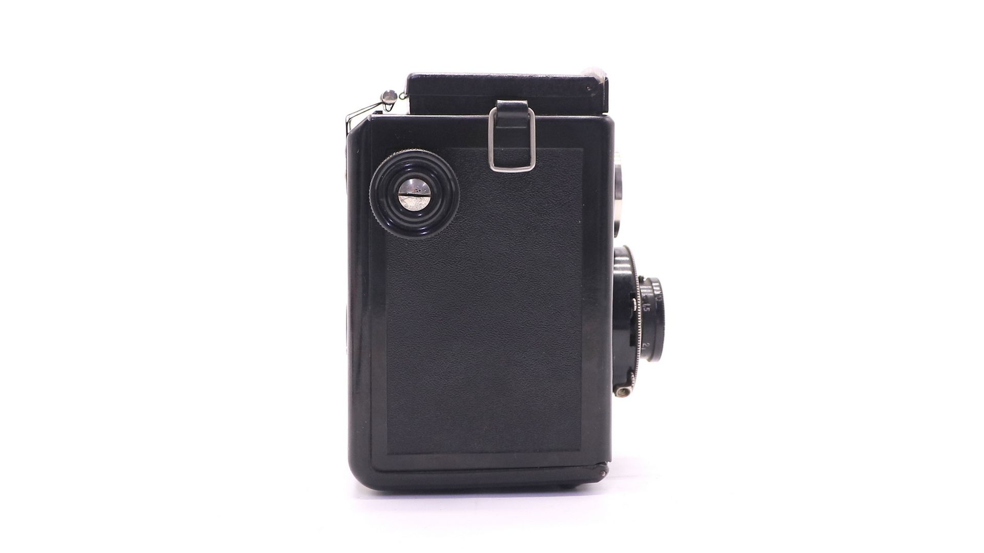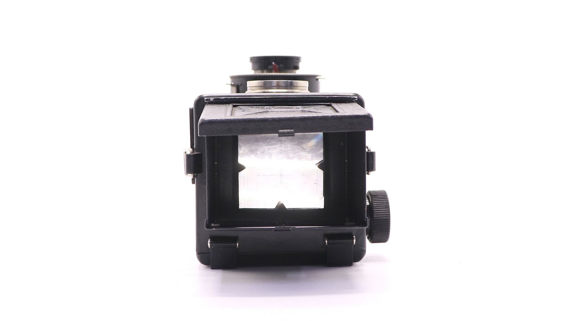 Советский среднеформатный двухобъективный зеркальный фотоаппарат Комсомолец. Произведен на Государственном оптико-механическом заводе в 1948 году.