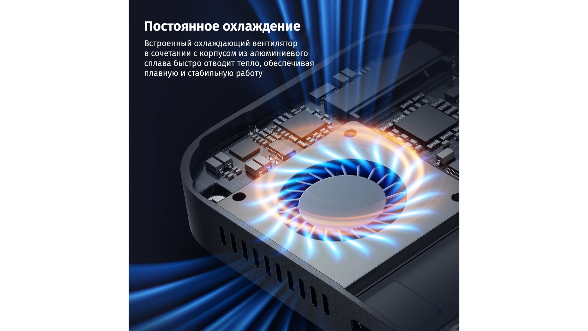 Встроенный вентилятор и алюминиевый корпус эффективно рассеивают тепло, гарантируя стабильную работу без перегрева. Идеальный инструмент для творческих профессионалов, ценящих скорость и мобильность.