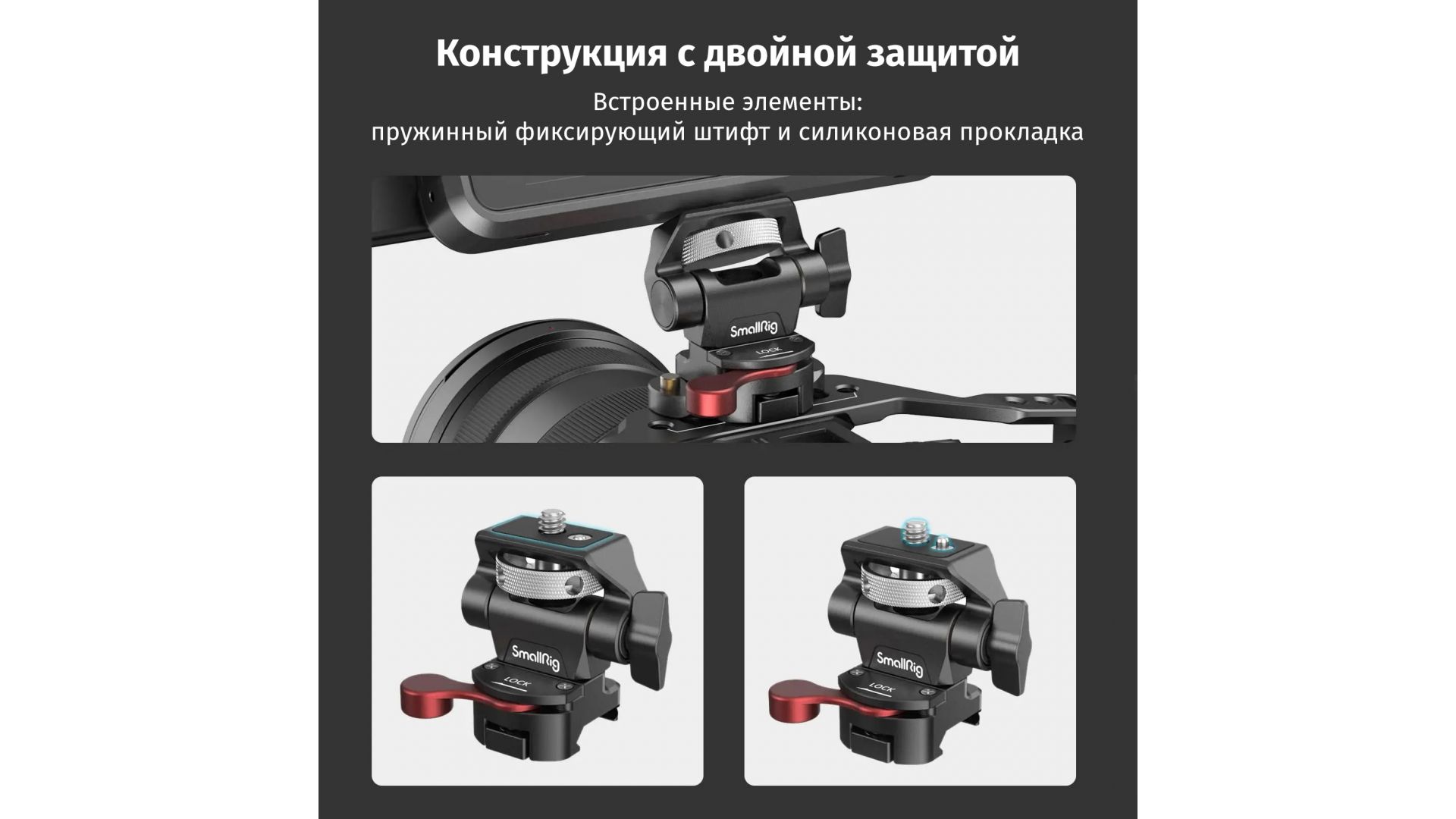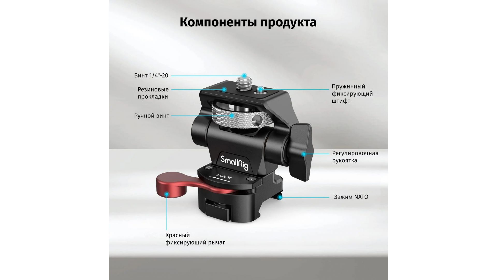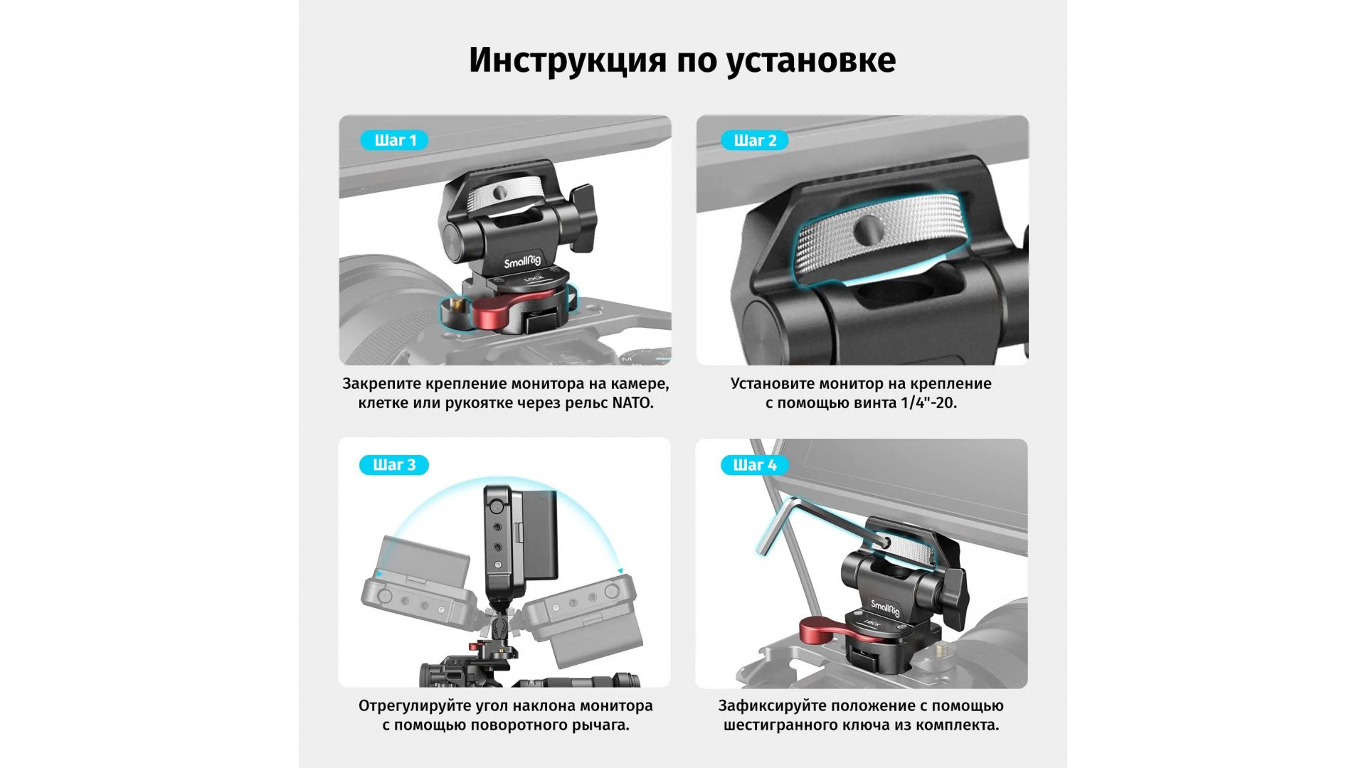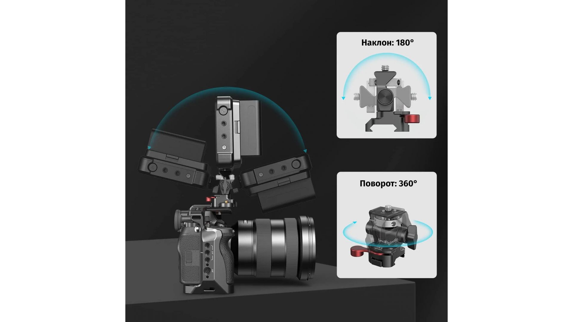 Крепление SmallRig 2906 NATO CLAMP предназначено для надежной фиксации накамерных мониторов (5" или 7") весом до 1,5 кг на риги и клетки. Его подвижная конструкция позволяет легко регулировать положение дисплея под любым углом, обеспечивая комфортную работу оператора.