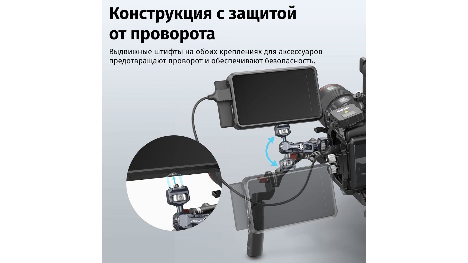 - Растягивающиеся штифты на обоих креплениях аксессуаров, предотвращающие скручивание и обеспечивающие безопасность;