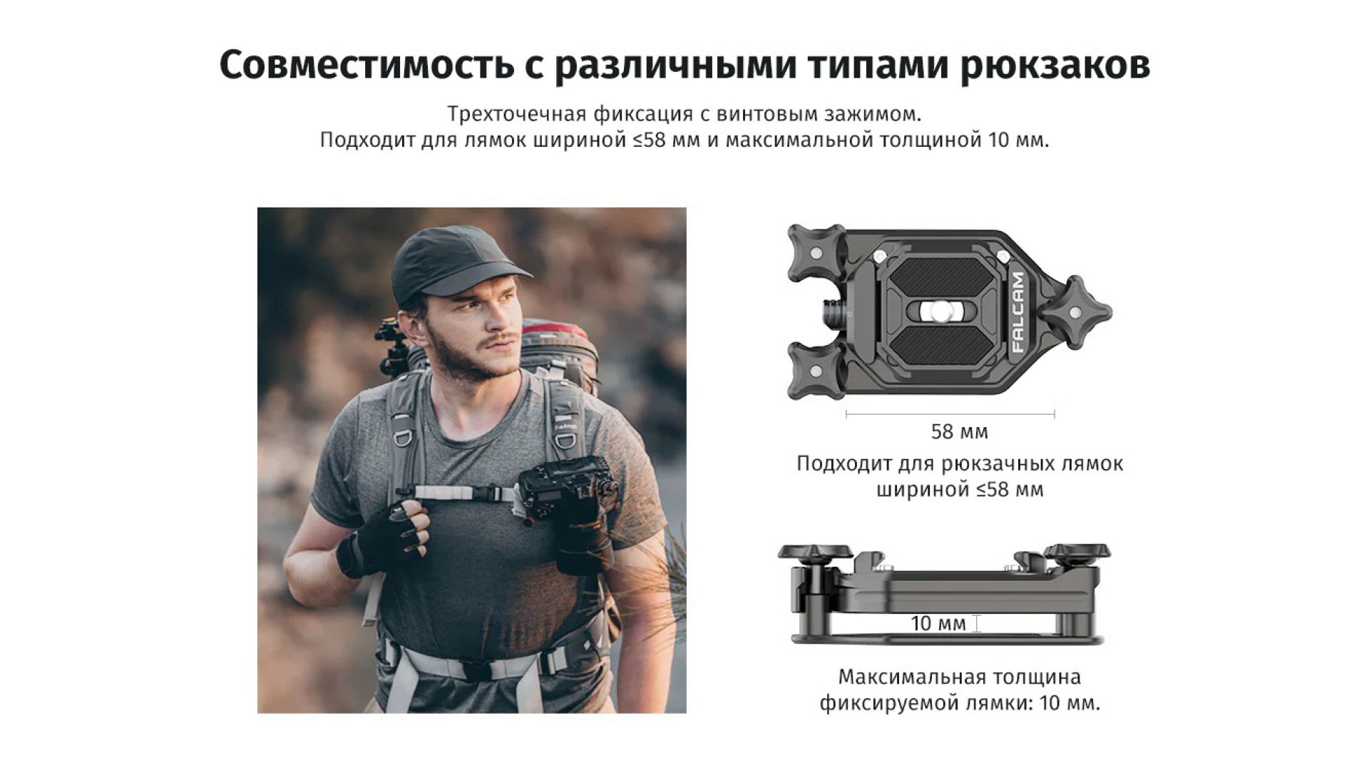 Быстросъёмное крепление подходит для ремней шириной до 58 мм и толщиной до 10 мм.