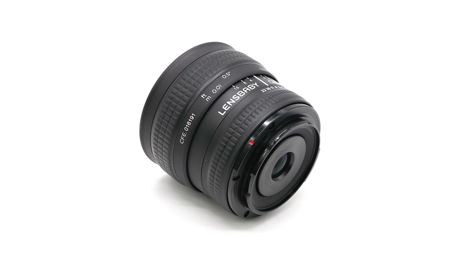Объектив имеет фокусировочное кольцо, которое крутится почти на 270°. Рабочее расстояние объектива около 6 мм от передней линзы.