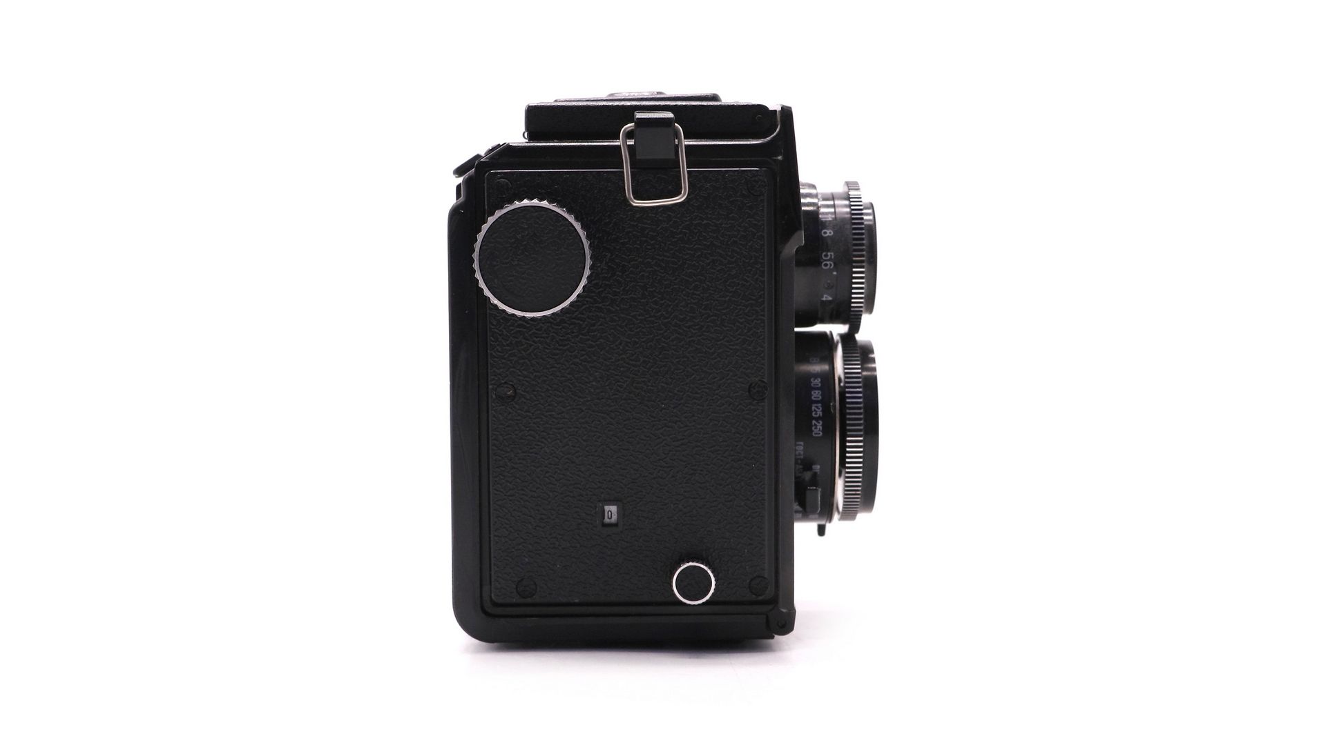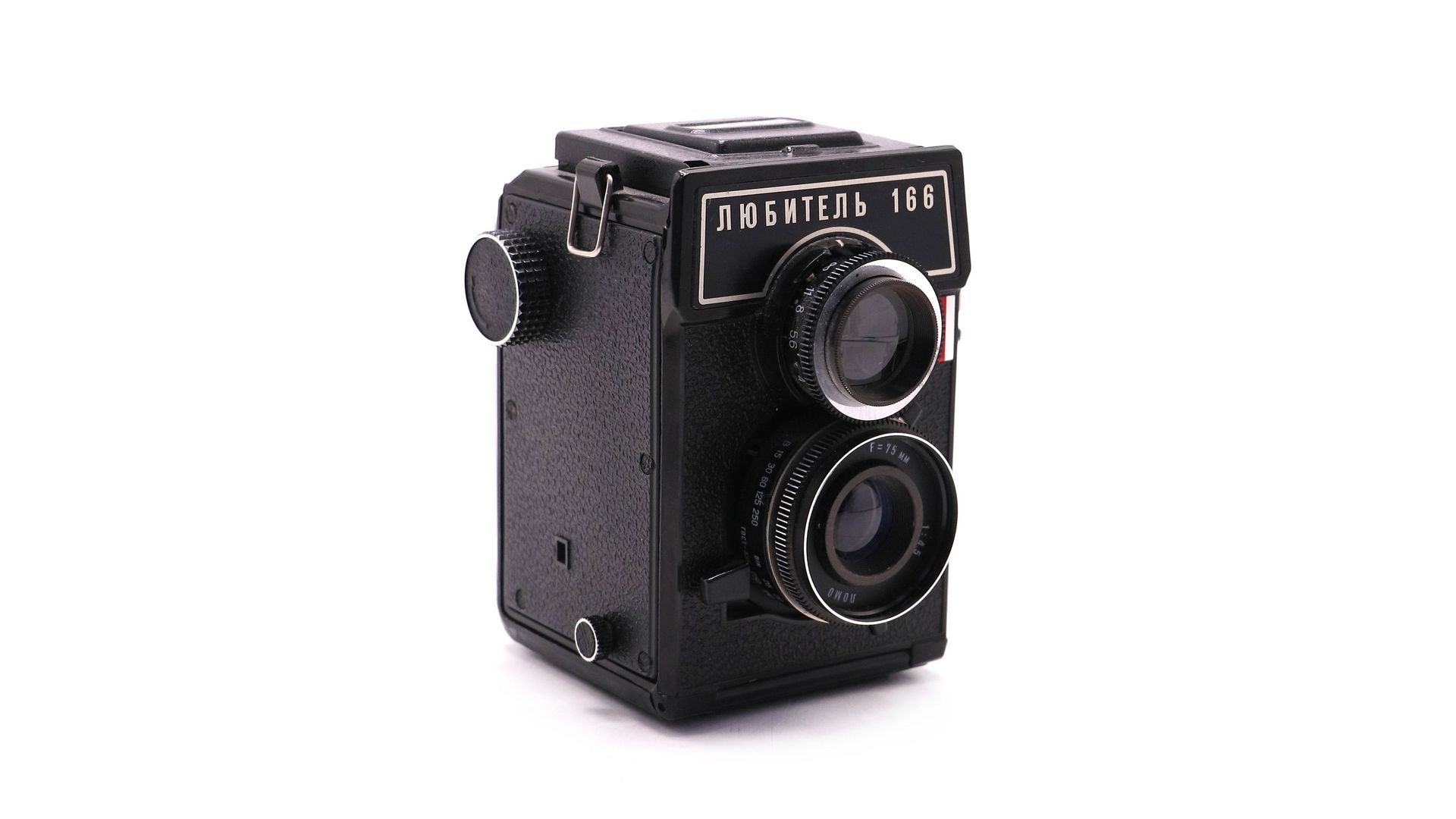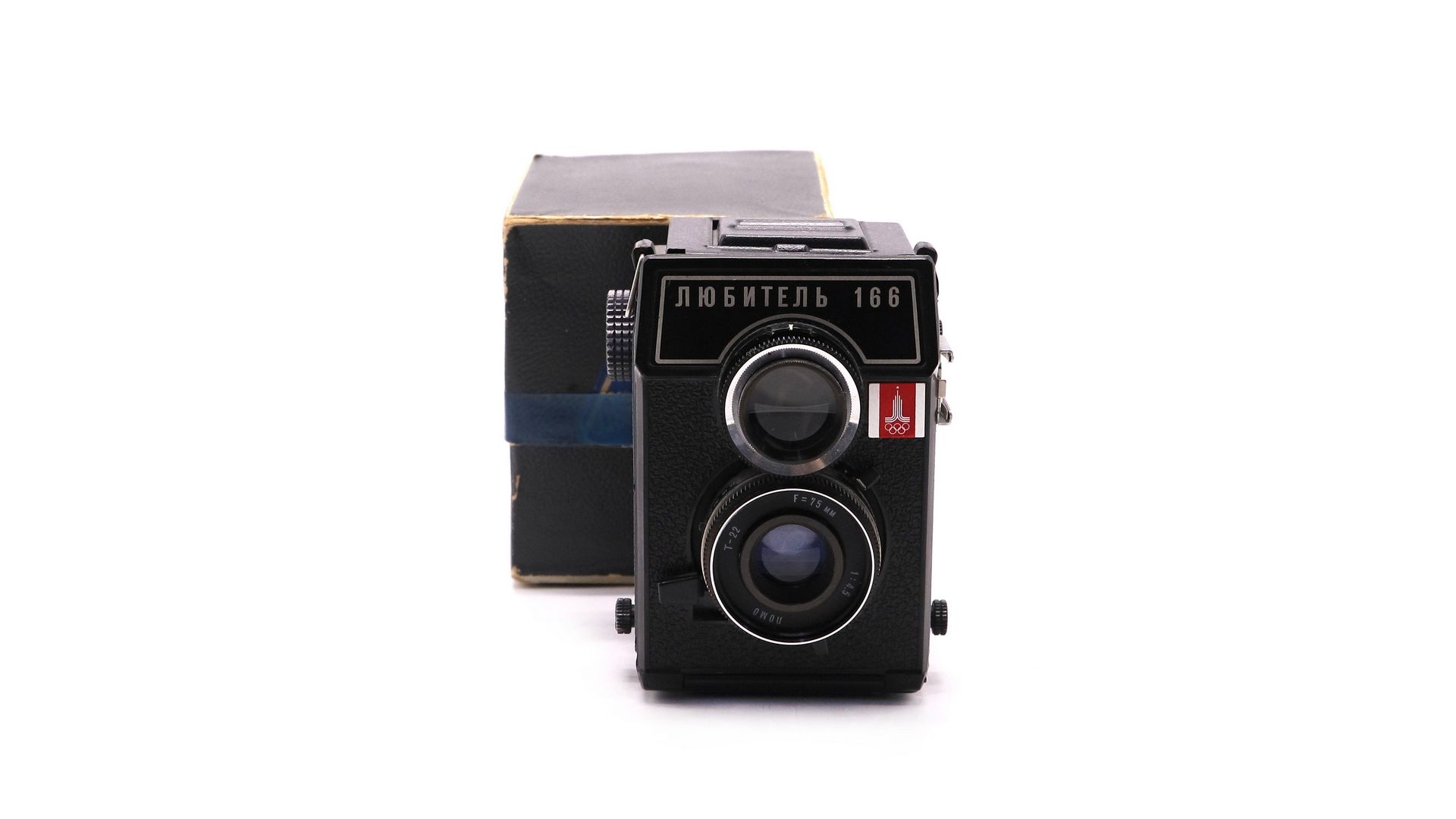Советский среднеформатный двухобъективный зеркальный фотоаппарат Любитель 166. Выпущен Ленинградским Оптико-механическим Объединением в 1979 году. Специальная олимпийская партия, с эмблемой московской Олимпиады 1980 года.
