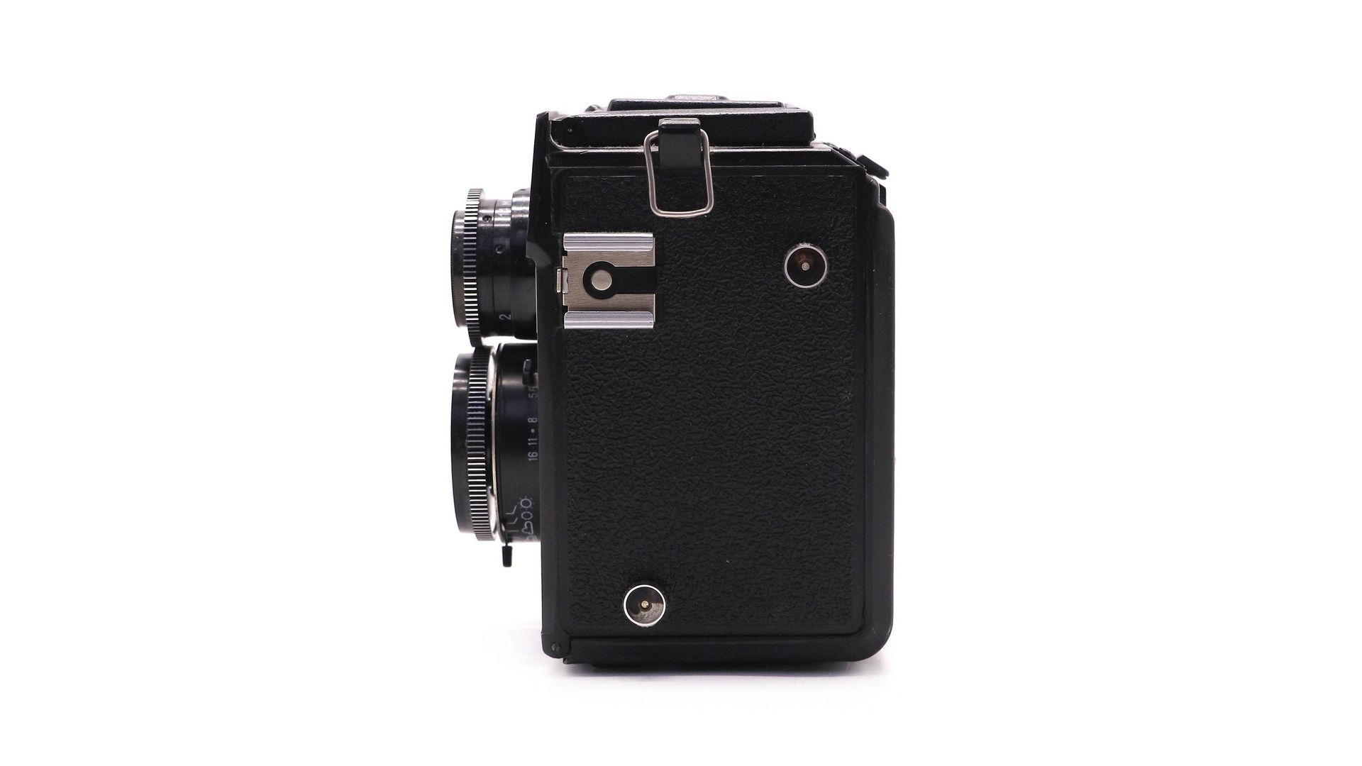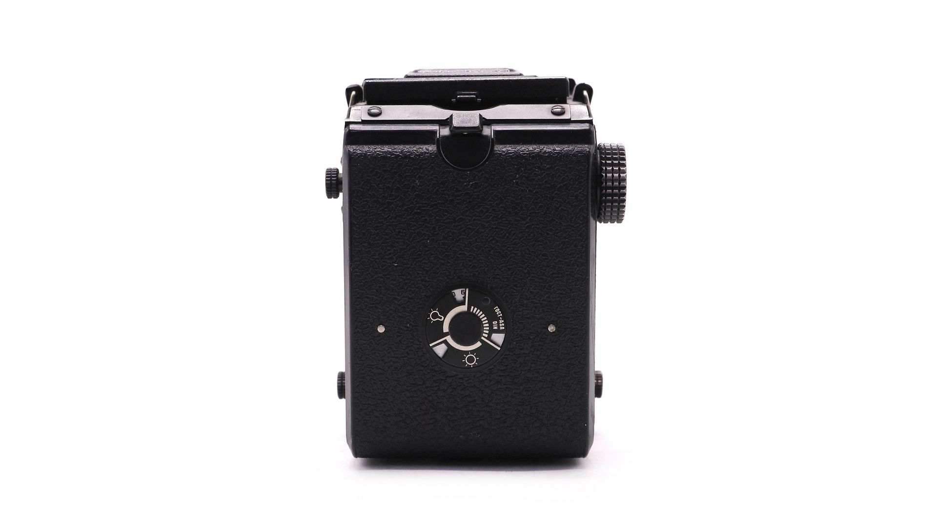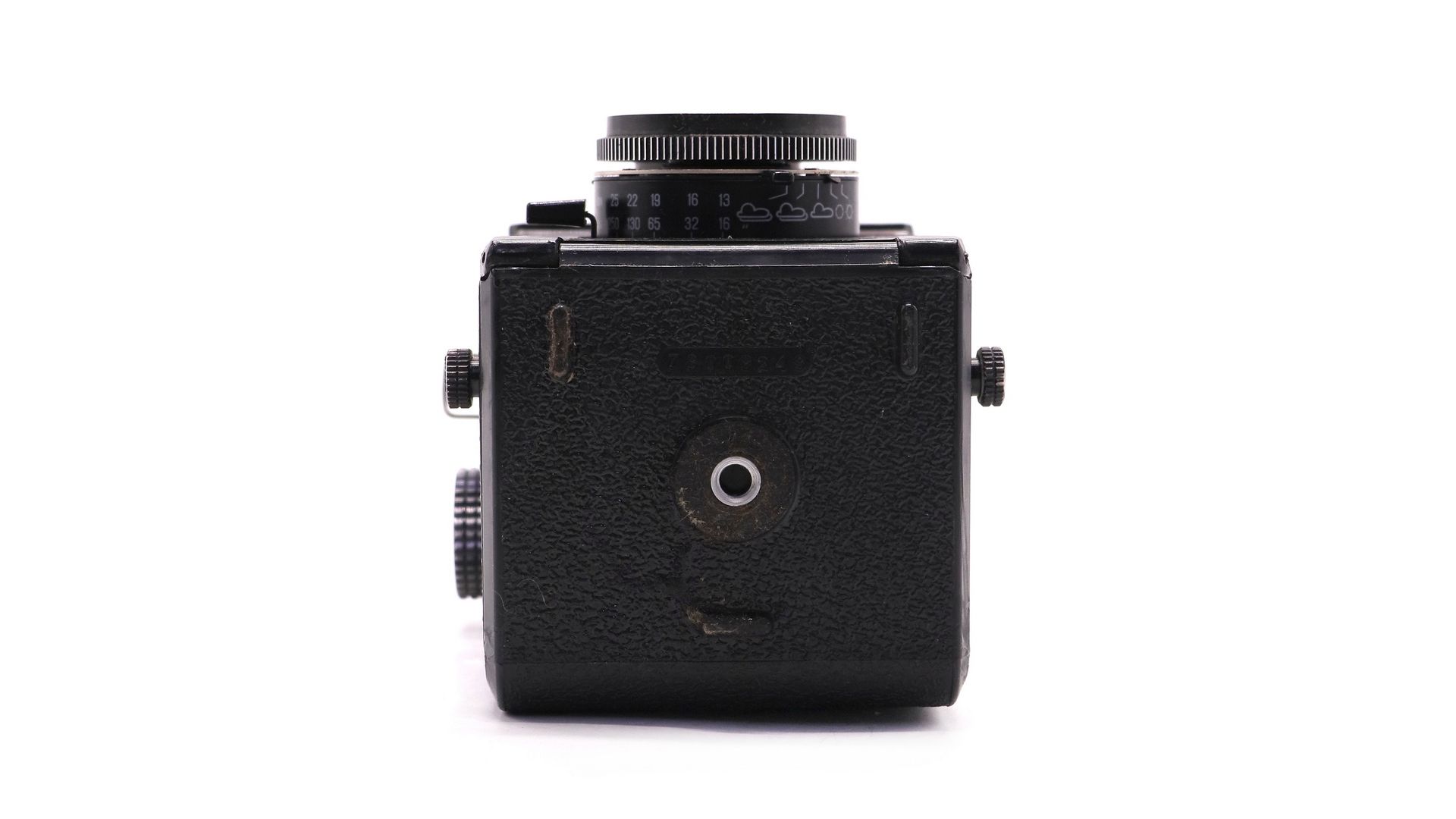 Съемочный объектив – просветленный, жестко встроенный типа «Триплет», «Т-22» (4,5/75). Фокусировка изображения производится по матовому кругу в центре коллективной линзы, вращением передней линзы объектива, сопряженной с объективом видоискателя посредством зубчатых оправ, или установкой по шкале расстояний. Зеркало видоискателя неподвижно. Предел фокусировки от 1.4 м до бесконечности. Объектив видоискателя –ахроматическая линза с относительным отверстием 1:2,8, значительно превышающим относительное отверстие съемочного объектива, обладает повышенной чувствительностью к установке на резкость. Фокусное расстояние – 60 мм. Формат кадра - 6х6.