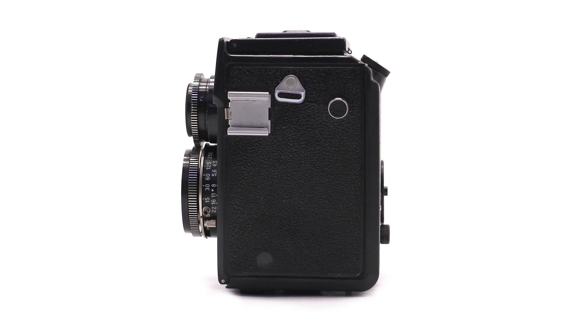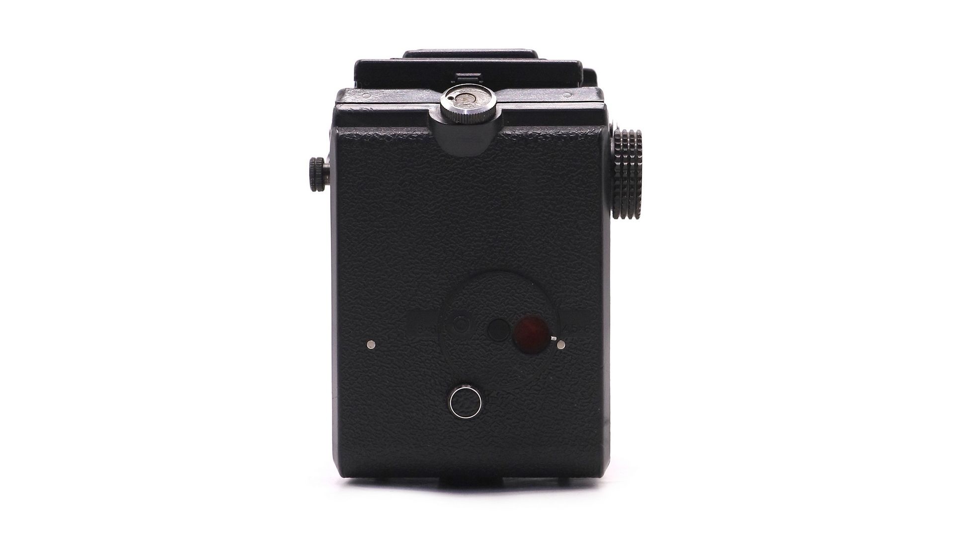 -Двухобъективная система. Верхний объектив служит для визирования и фокусировки, нижний — для съёмки. Такой принцип обеспечивает отсутствие параллакса в кадре и уникальную «картинку».