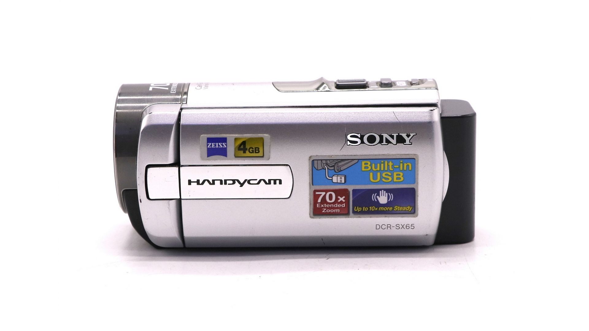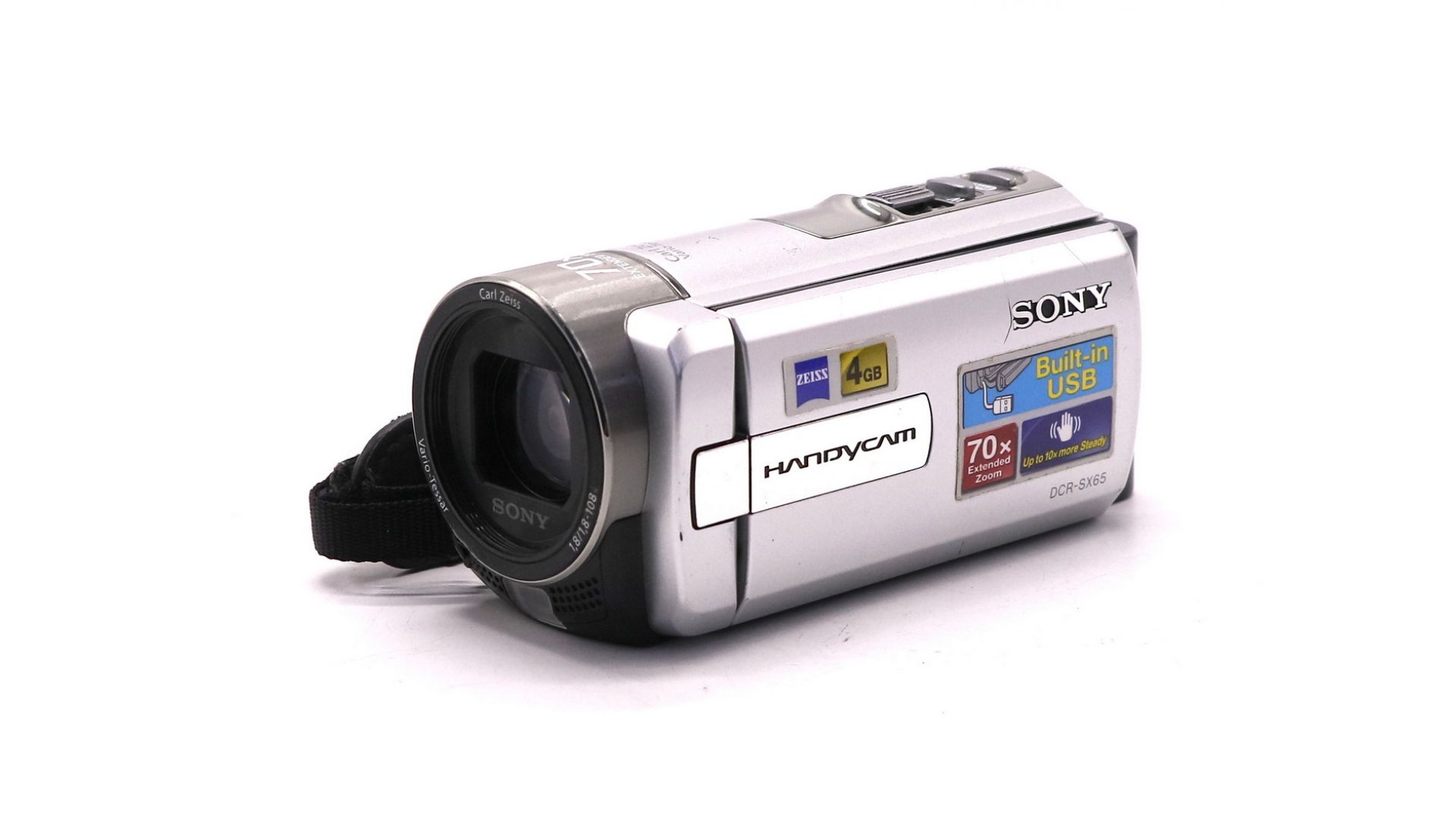 Легкая и компактная видеокамера Sony DCR-SX65E создана для простой и качественной съемки. Высококлассный объектив Carl Zeiss и мощный зум позволяют снимать детализированное видео даже с большого расстояния. Модель записывает видео с четким изображением и стереозвуком на встроенную память 4 ГБ или на карты памяти форматов SD/SDHC/SDXC и Memory Stick.